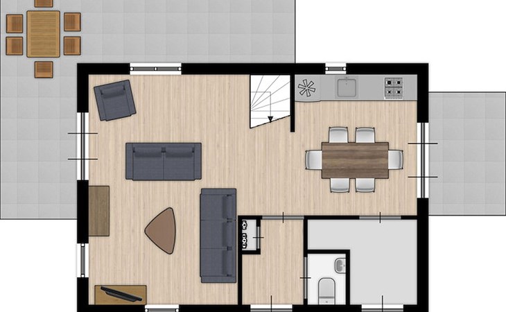 The detached villa Buitenhuis with sauna 6 is suitable for up to 6 persons. This villa at Summio Parc Aquadelta consists of two floors and has three bedrooms and one bathroom.
