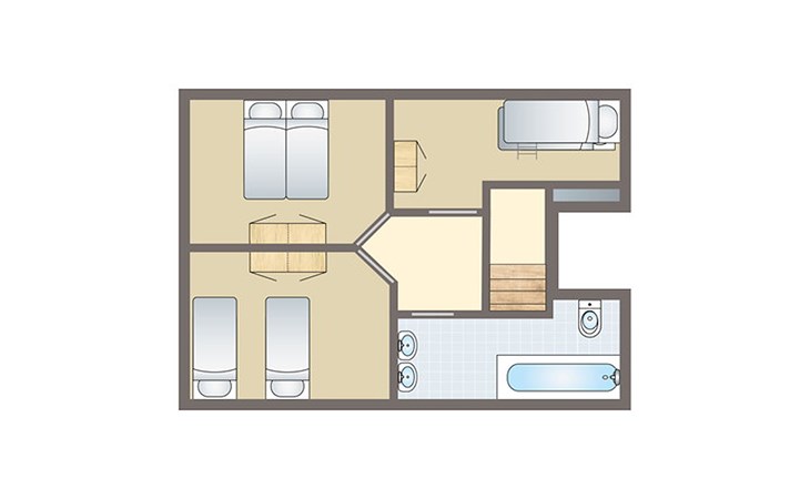 The accommodation could have a different layout and furnishings. The maps and images are indicative only.