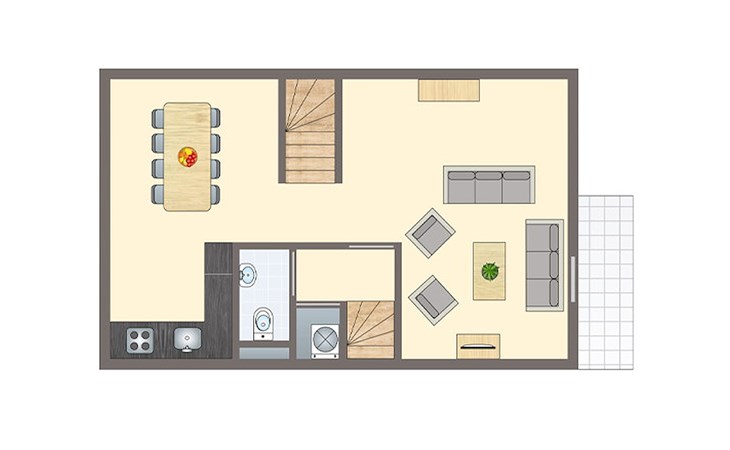 Outside there is a furnished patio with a parasol. The bungalow also has a roof terrace. The bungalow has stair gates and childproof sockets.