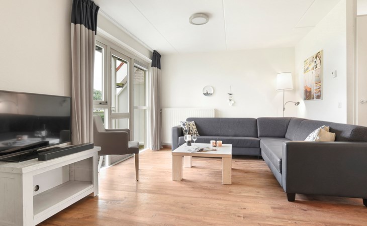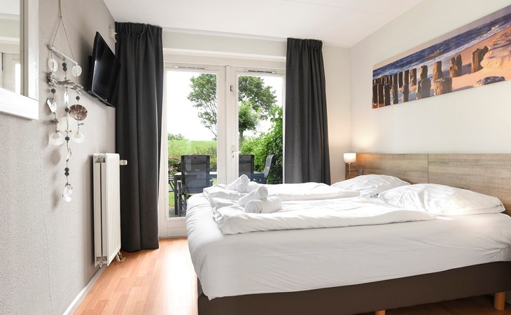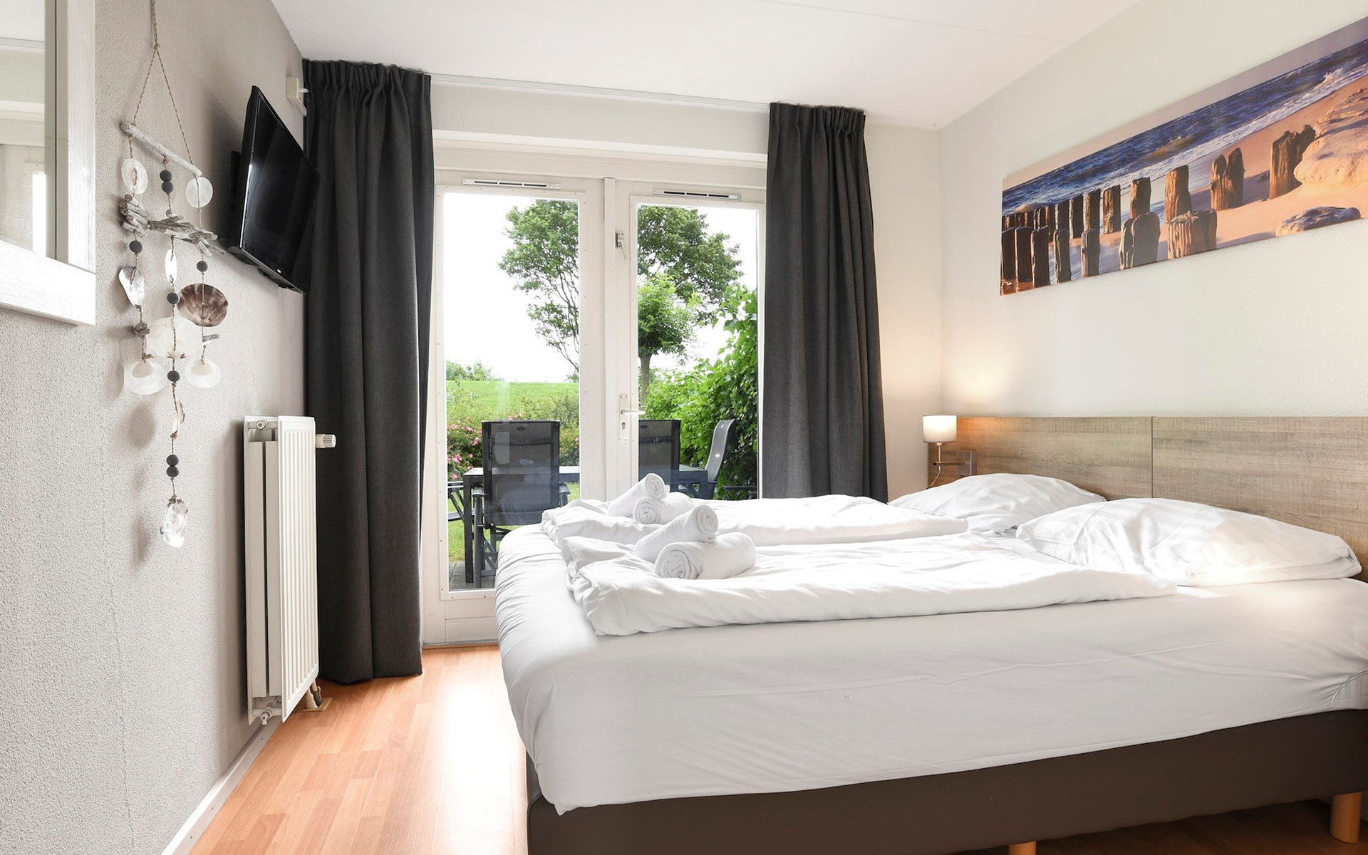 Bungalow 8V at Summio Parc Port Greve is suitable for up to 8 persons. This semi-detached bungalow has a view of Lake Grevelingen. The bungalow consists of three floors and has four bedrooms and one bathroom.