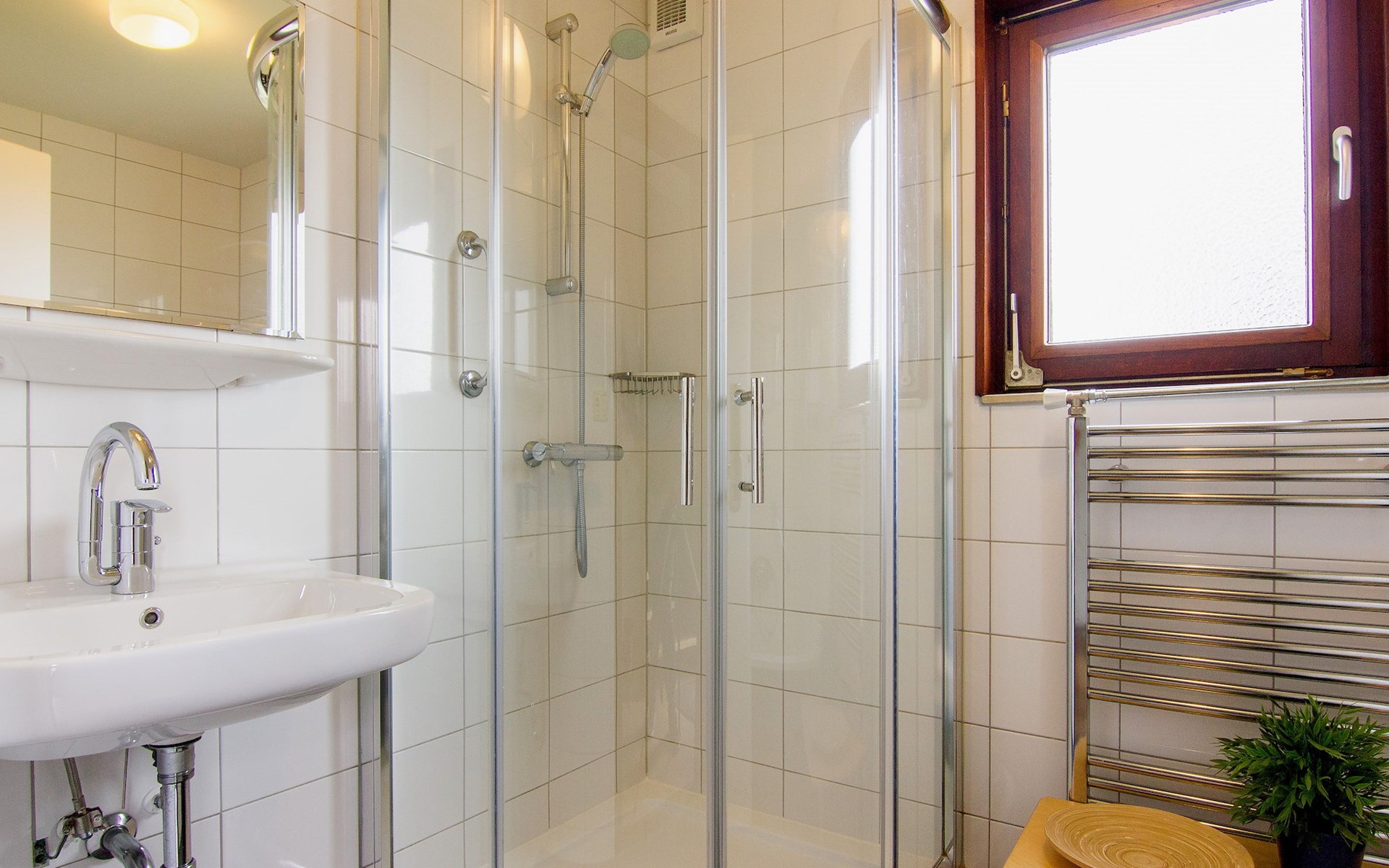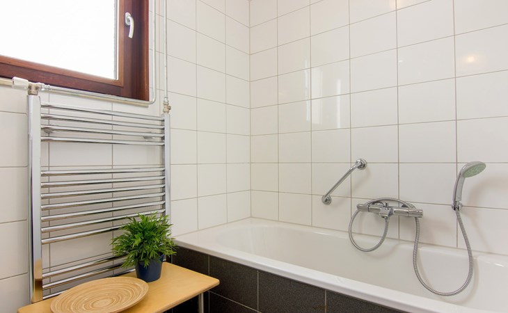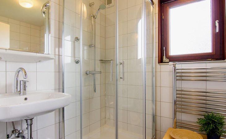 The bathroom is on the ground floor. The bathroom has a bathtub, shower cubicle and washbasin. There is also a separate toilet.