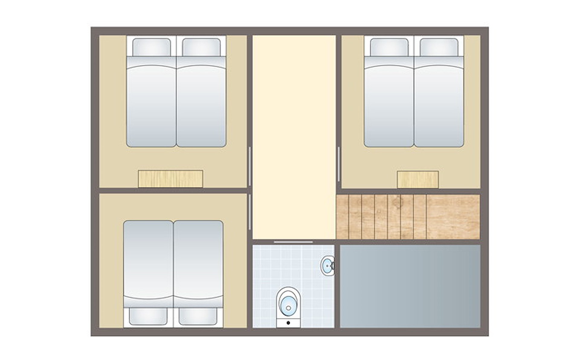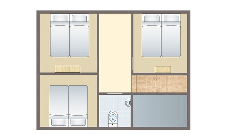 On the first floor are three bedrooms, each with two single beds. The beds are made upon arrival. There is a separate toilet.