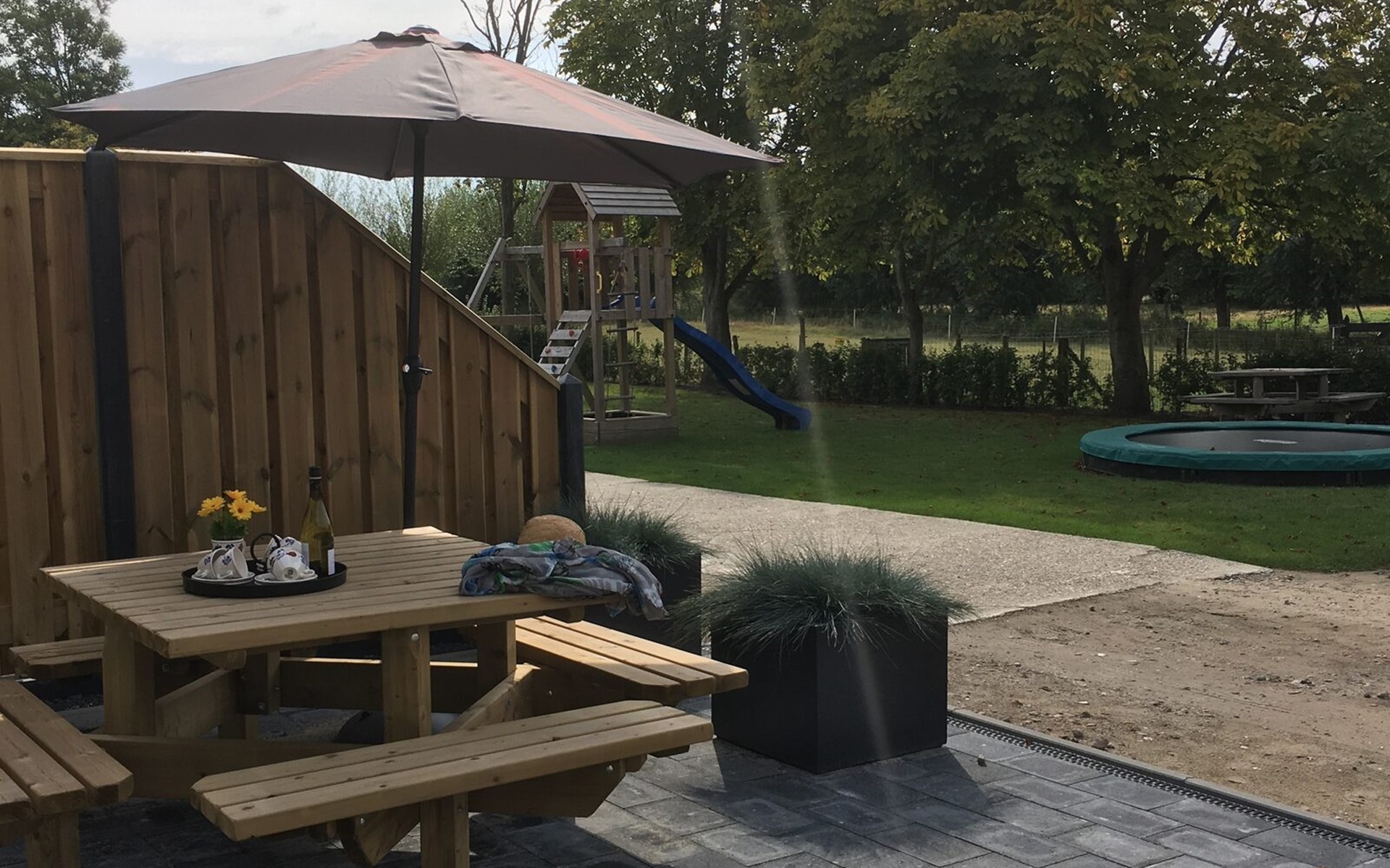 There is a lot of space around holiday home Druif, at the front there is a sheltered terrace with a fence for some privacy. The large property includes a sandpit, trampoline, playhouse and playground equipment for your children and there is a small deer park. There are plenty of parking spaces.