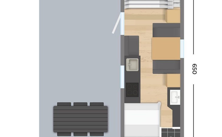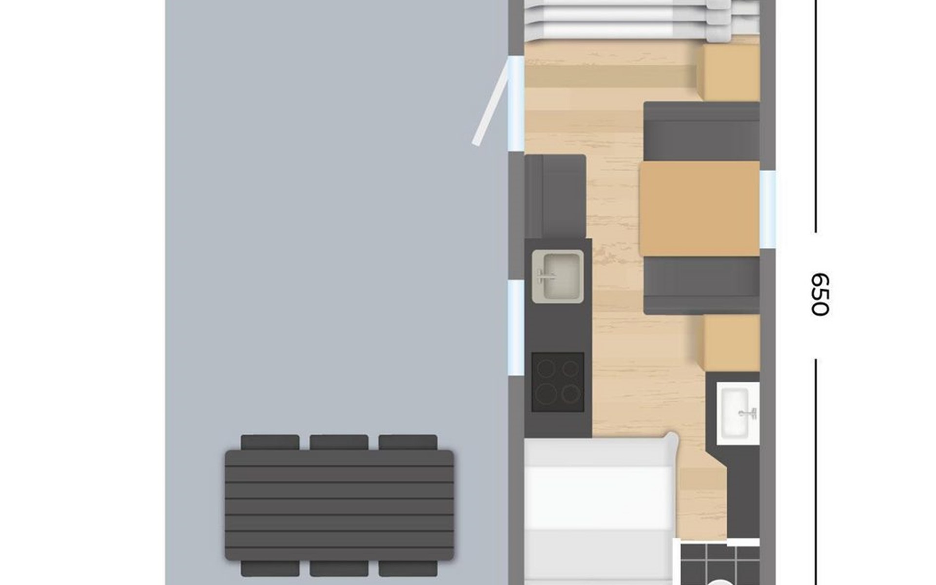 The touring caravans are equipped with all the luxury and comfort of today. The caravans are furnished with a bunk bed for 3 people. Thanks to the bunk bed, you no longer have to convert the table in the caravan into a bed. The bunk bed also creates extra storage and living space. Furthermore, the caravan is equipped with a fixed bed and a built-in seat with table where you can sit together. Standard bed linen is available for the number of reserved persons from 2 years old. Of course there is a possibility to cook in the kitchen, which is fully equipped. We have already set up the awning for you, from the tent you can enjoy the outdoors to the fullest. In the awning you will find a table with chairs that you can also move outside. On hot summer days you can unzip the tent cloths to connect the outside with the inside.