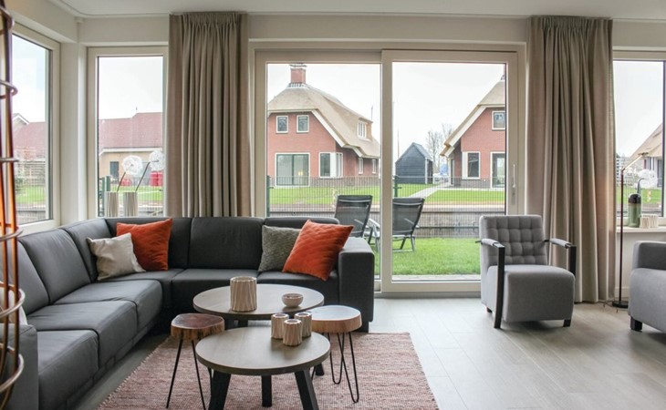 A spacious and bright holiday home suitable for six people located on the waterfront. The large and luxurious house with thatched roof is furnished for six persons and offers more than enough space in the bedrooms and living room. The house has an open kitchen with cooking island and a barbecue.