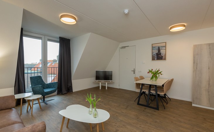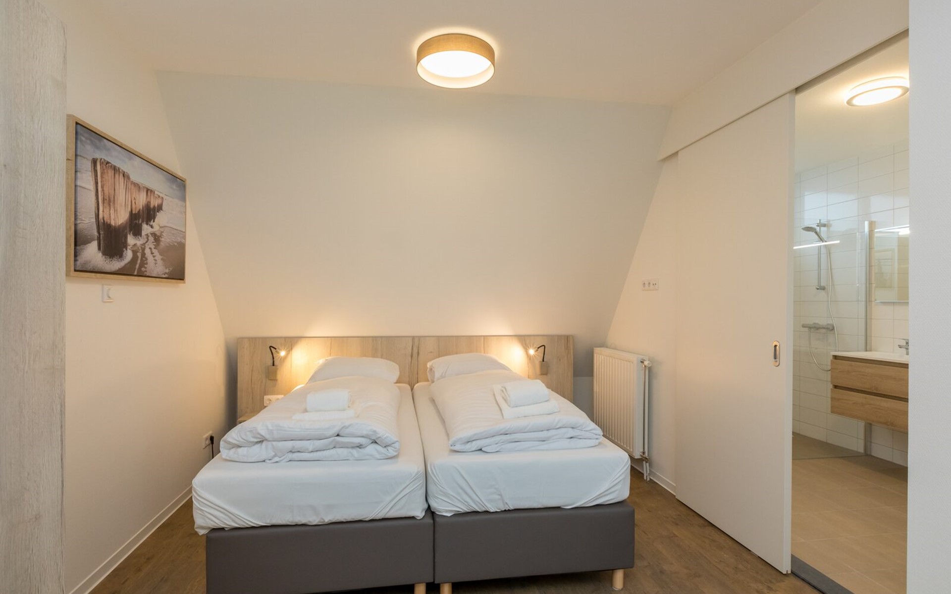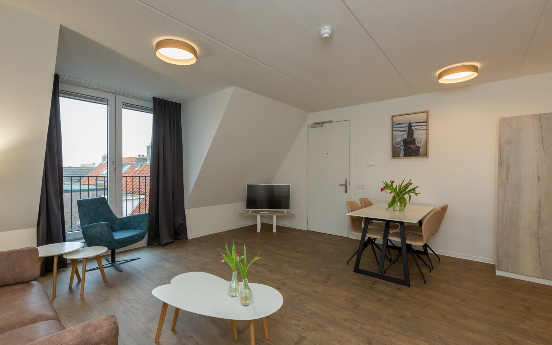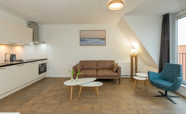 Celebrate holidays in luxury and comfort. The luxury studios have the comfort of a hotel room with the convenience of a studio. A comfortable double box spring bed to snuggle in after a long vacation day. Each studio has a seating area and a kitchen. This is furnished with a kettle, fridge, dishwasher, oven, filter coffeemachine and espresso. There is also a spacious bathroom with a double sink, shower, hairdryer and toilet. Es gibt kein Aufzug.