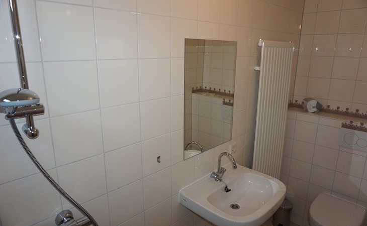 The house has three bedrooms. One is a very spacious bedroom with a double bed and an ensuite bathroom with a shower in bath, a washbasin and a toilet. There is also a bedroom with two single beds and a bedroom with one single bed. The second bathroom has a shower, sink and toilet. The house has a washing machine and a tumble dryer.