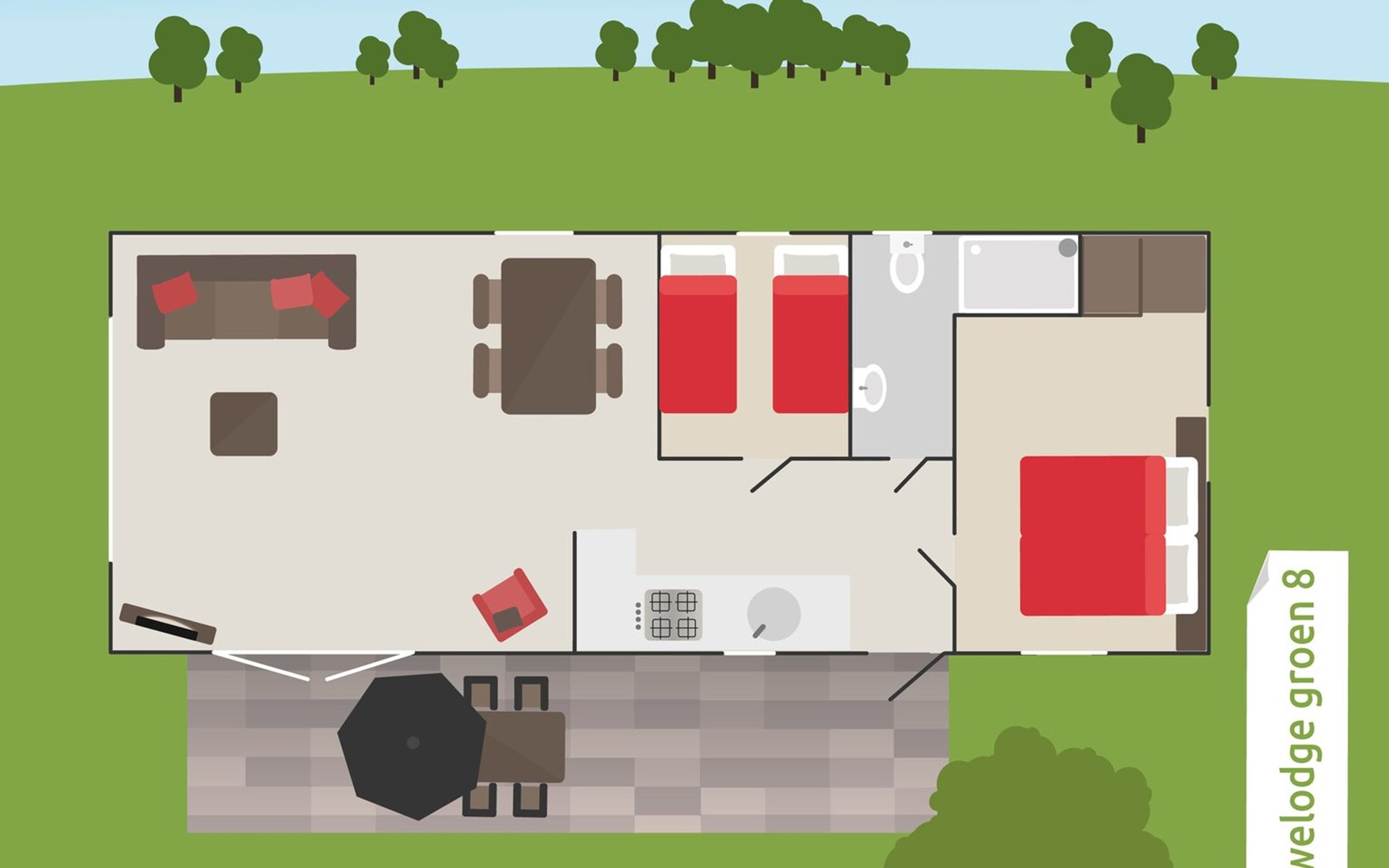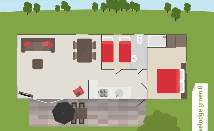 Each Veluwe lodge has its own character and appearance. For example, some chalets have a veranda, a canopy or an open view over the meadow. Would you like to book a Veluwe lodge with a specific feature? You can indicate this when booking in the step choose on map.