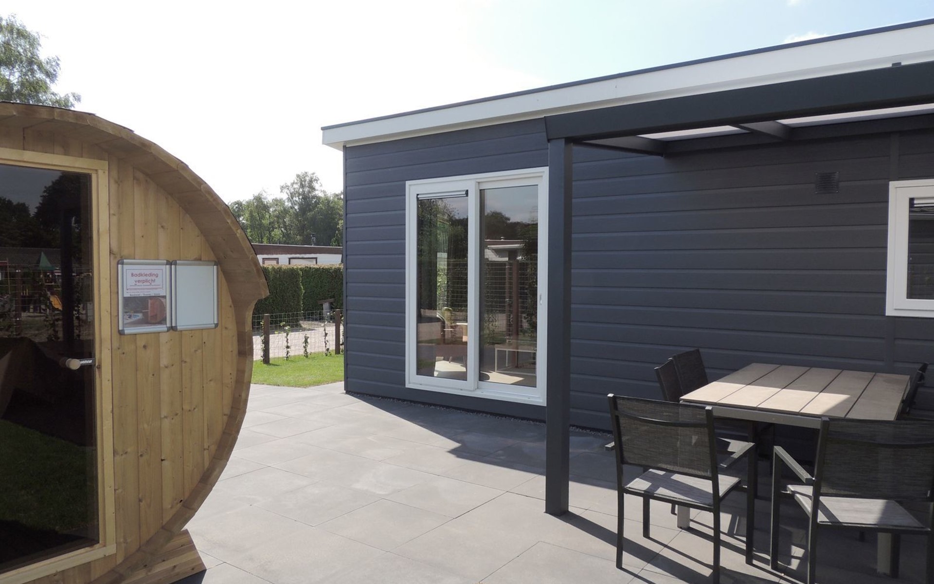 Outside, the wood-fired barrel sauna immediately catches the eye. The sauna can be used by 6 people: let the relaxing begin! In the garden you will also find patio furniture and a parasol. The terrace is partly covered.