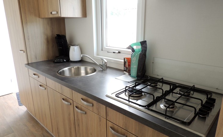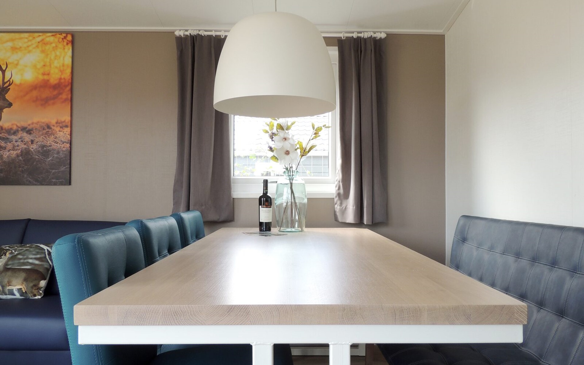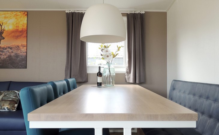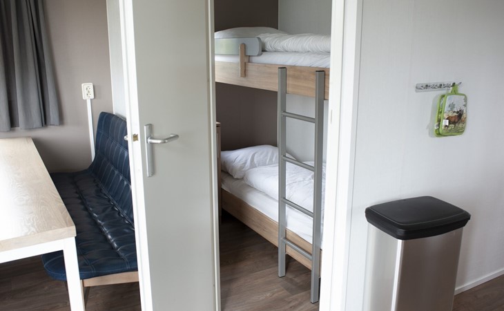 Ultimate relaxation in the Veluwe countryside: that is possible thanks to the lovely outdoor sauna in the garden of this XL chalet. The Veluwelodge can accommodate 6 people and is furnished in a modern, Veluwe style. The beautiful kitchen is equipped with, among other things, a 4-burner gas stove, combi microwave, Senseo coffee machine and fridge-freezer. Furthermore, the chalet offers a bathroom with a shower, sink and toilet and three spacious bedrooms: one with a double through two single beds, one with two single beds and one with a bunk bed.