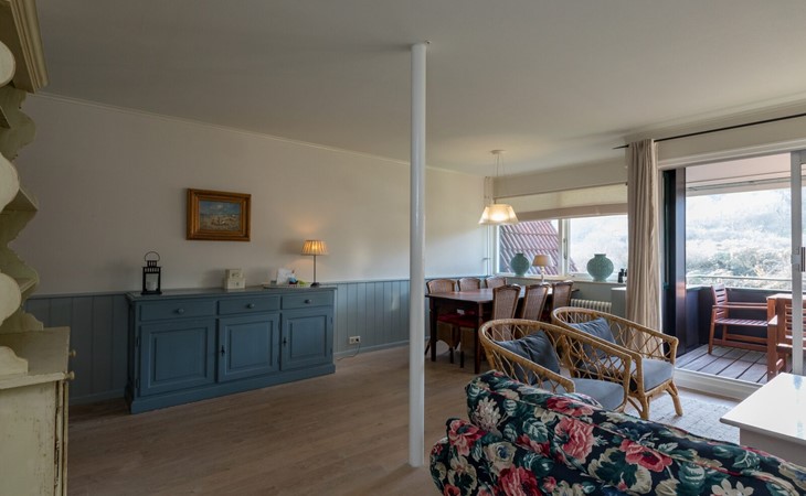 Sfeervol appartement dichtbij het centrum en onderaan de duinen. Op deze toplocatie is het heerlijk genieten met een vrij uitzicht op de duinen. Via de hal komt u in de woonkamer met keuken, welke grenst aan het zonnige balkon op het zuiden. De badkamer heeft een douche, wastafel en wc. In de keuken zijn alle voorzieningen aanwezig: koelkast met vriesvakje, nespresso apparaat, toaster en oven. De slaapkamer heeft een heerlijk tweepersoonsbed. De andere slaapkamer heeft een eenpersoonsbed, de 3e slaapkamer een stapelbed. De woonkamer heeft een flatscreen tv met buitenlandse tv-zenders. Wifi is beschikbaar.