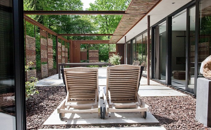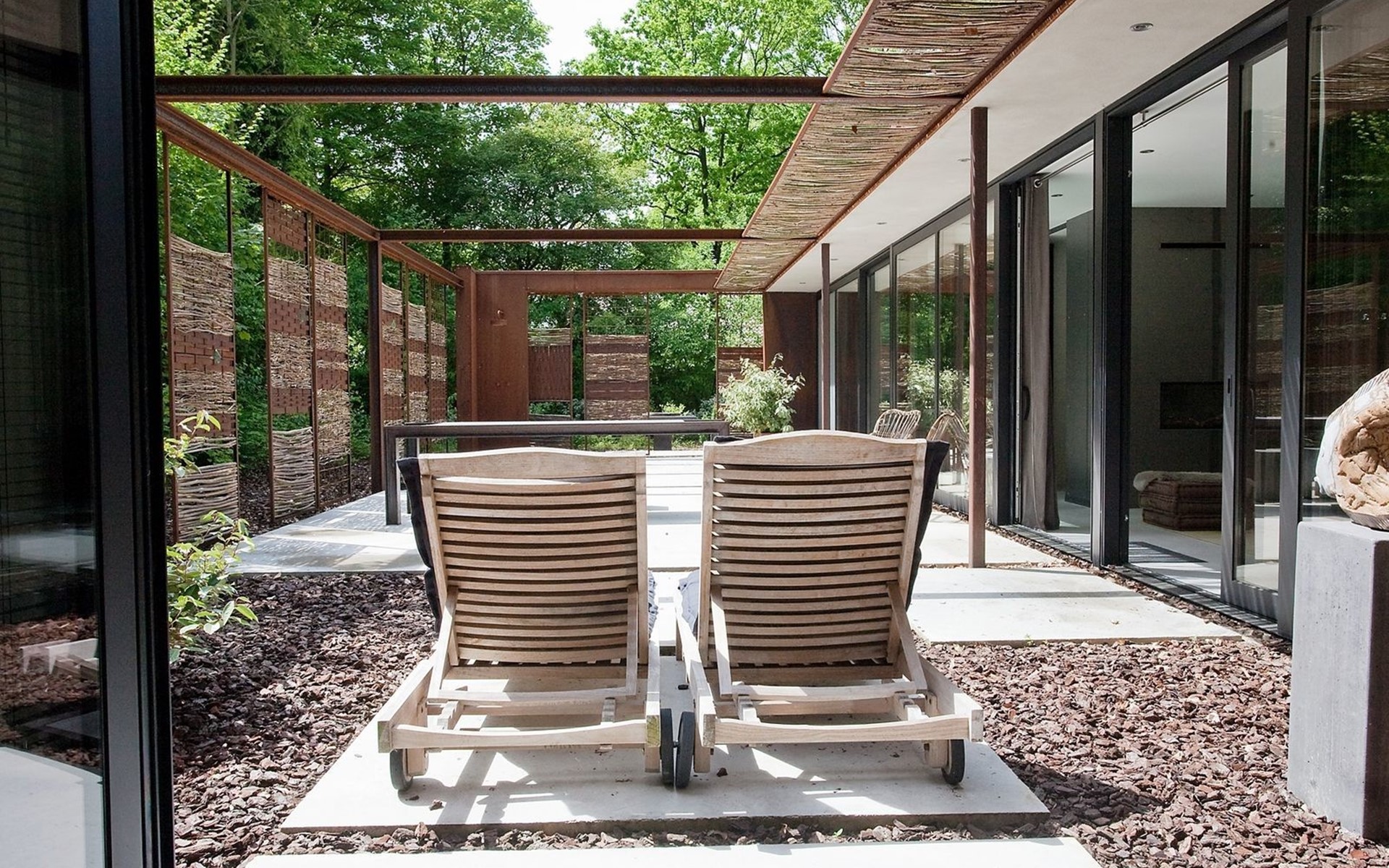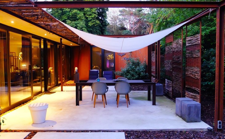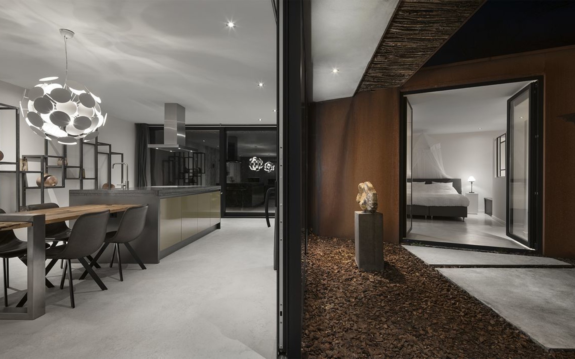 De passie van de eigenaren voor ruimtelijke vormgeving en kunst is in alle facetten doorgevoerd. Bij de architectuur en inrichting is gebruik gemaakt van staal, beton en glas, gecombineerd met modern comfort. Het resultaat is verrassend en uniek en in harmonie met de landelijke omgeving.