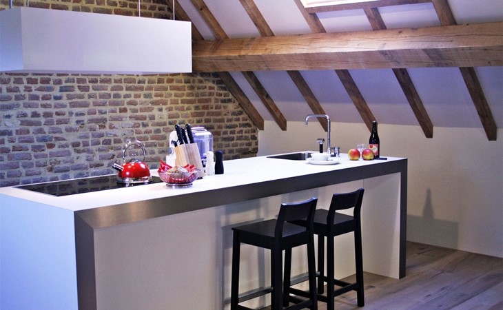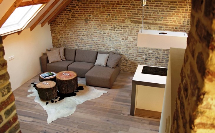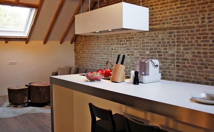 Deze witte carréboerderij ligt op korte fietsafstand van het centrum van Maastricht. Een ideale plek in een landelijke omgeving met de stad zo dichtbij. De voormalige koeienstallen en hooizolder zijn verbouwd tot 4 loft-appartementen. Een mix van oud en nieuw met robuuste muren en houten balken, de inrichting toont ingetogen luxe. Deze combinatie leidt tot een smaakvol en modern geheel.