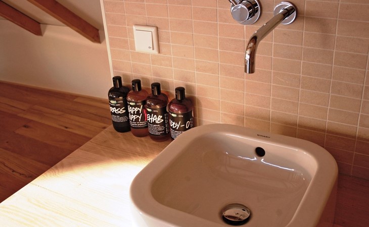 De boerderijappartementen liggen rondom een binnenplaats, welke door een oude poort is afgesloten. Ze hebben een open karakter door de hoge plafonds en open ruimtes. De natuurlijke materialen stralen eenvoud uit, designspullen van Iittala en Lavazza zorgen voor de puntjes op de i.