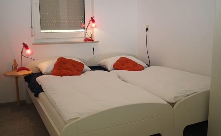 Op de begane grond bevinden zich 2 slaapkamers met elk 2 bedden.