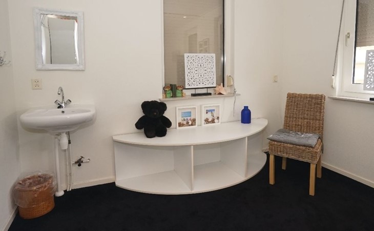 Veel spinnenweb en spinrag in hoeken (grond) de badkamer is een drama (Joop had t al gezegd en badmatjes gegeven als “dammetje”) het afschot is minimaal en een dorpel is wel noodzakelijk. De keuken is gedateerd maar prima. De bedieningsbanden van de rolluiken (vooral