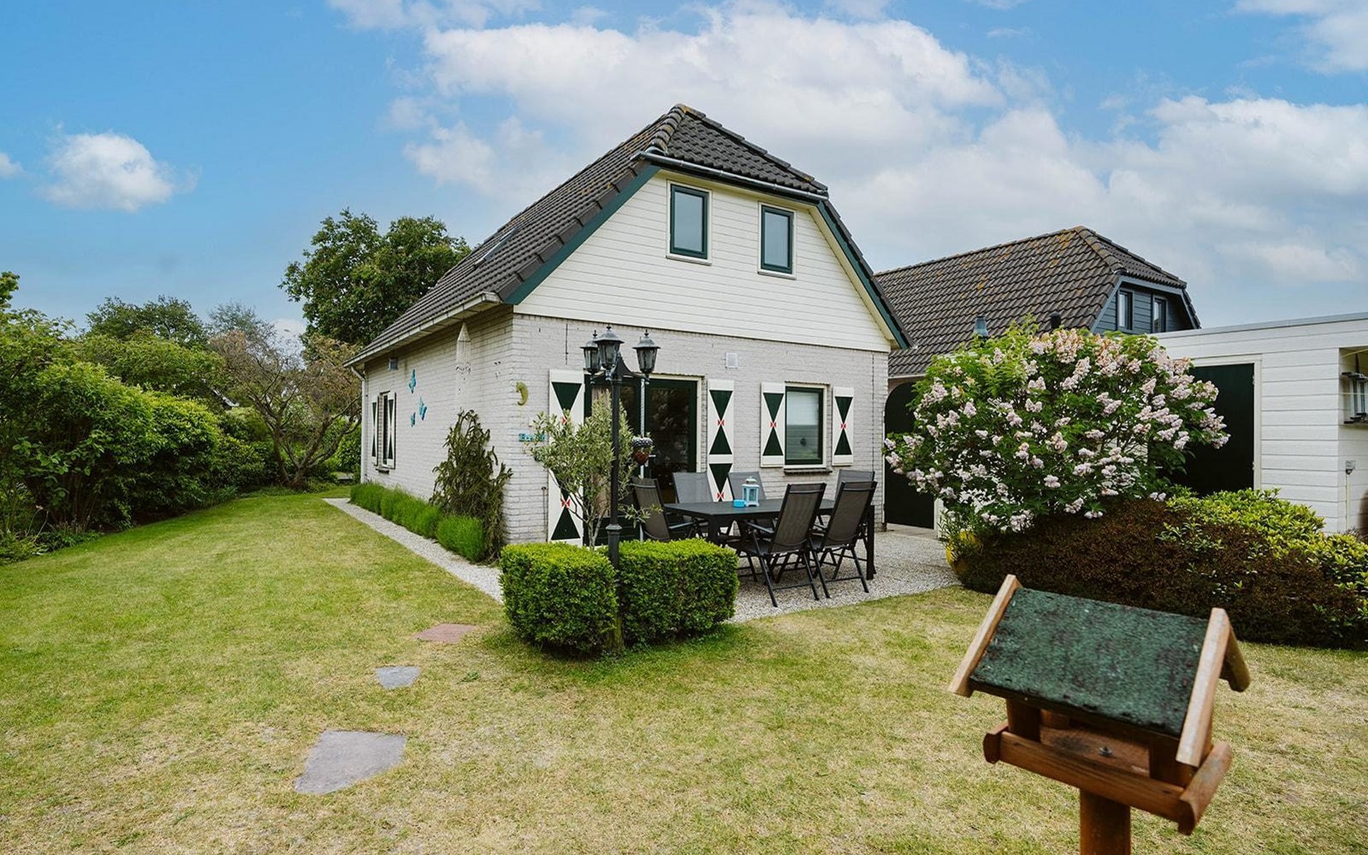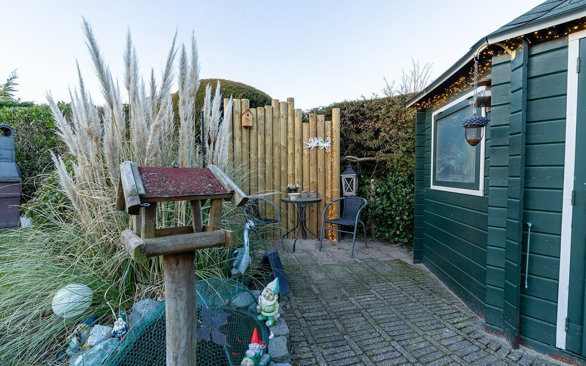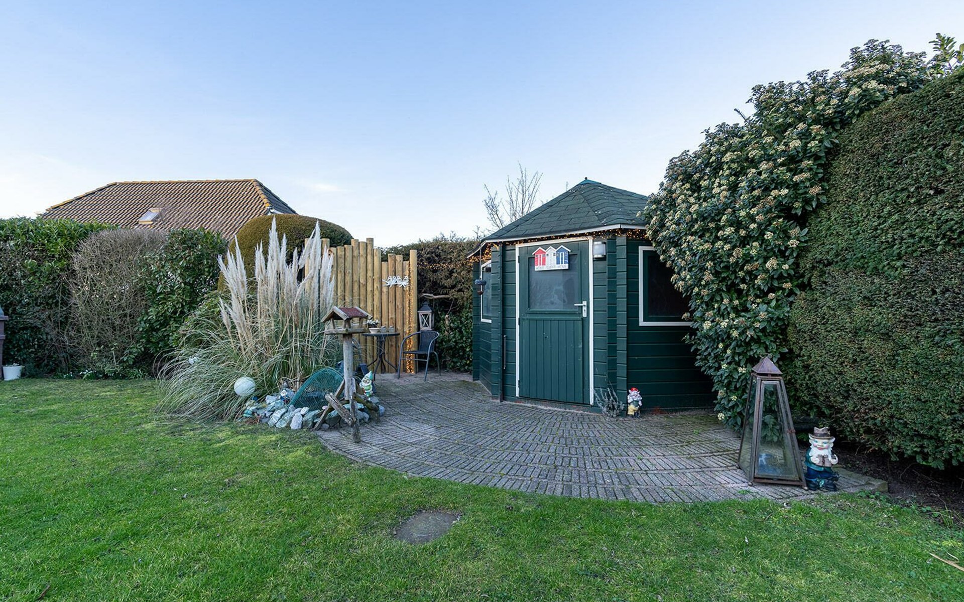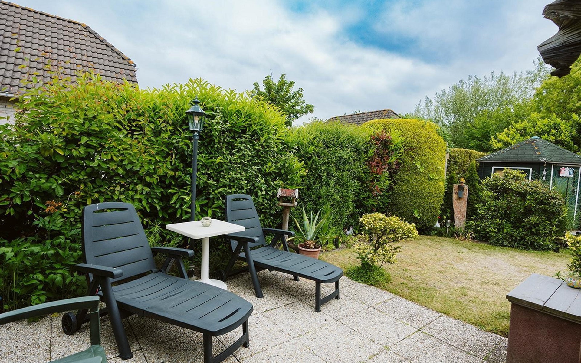 Het hart van deze woning is de liefdevol aangelegde tuin. Aan de noordoostkant nodigt een comfortabele zitgroep met parasol uit tot uitrusten. U kunt zelf ontdekken hoeveel andere romantische hoekjes en plekjes met liefde zijn aangelegd om gewoon te genieten van rust en stilte of van gezelligheid.