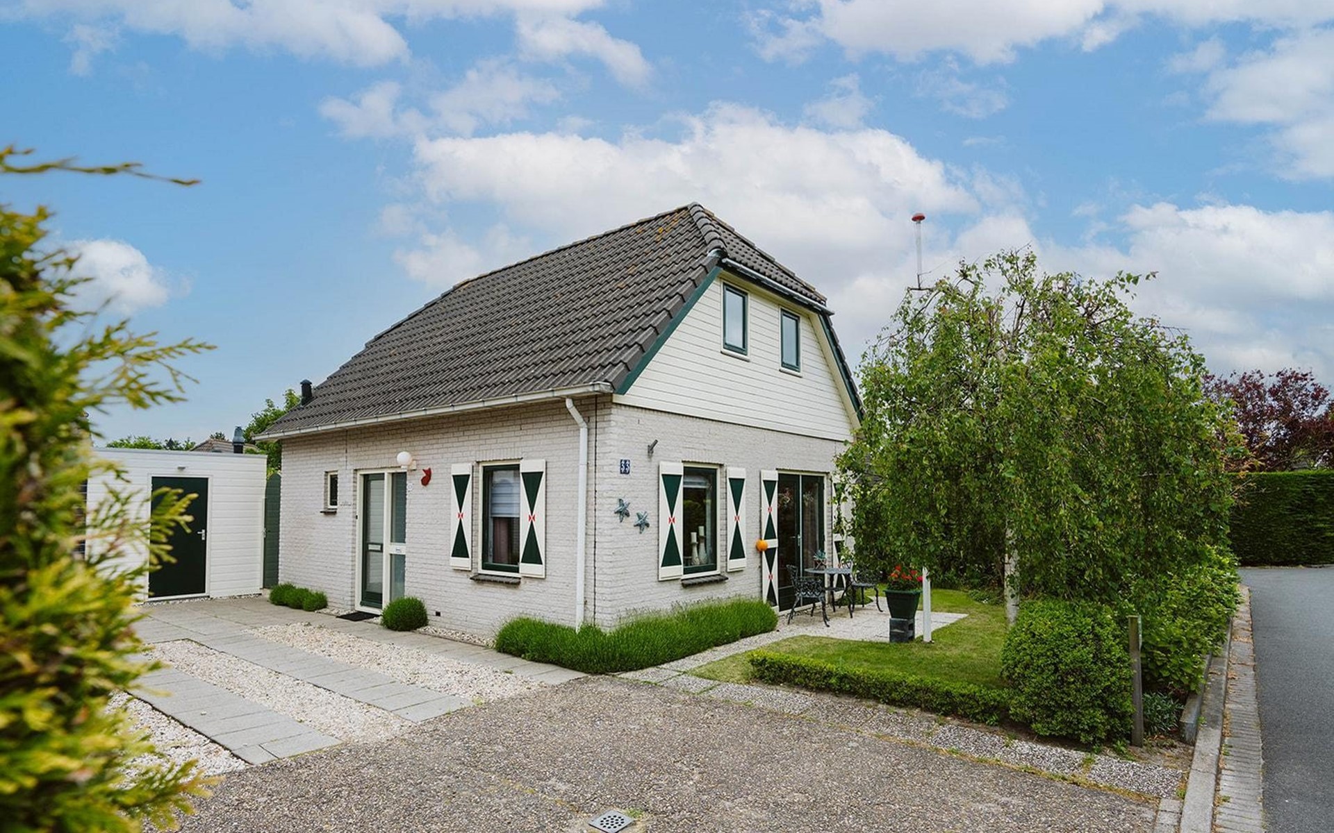 Een wasmachine en droger zijn beschikbaar in de berging. Parkeerplaats voor 2 auto's.