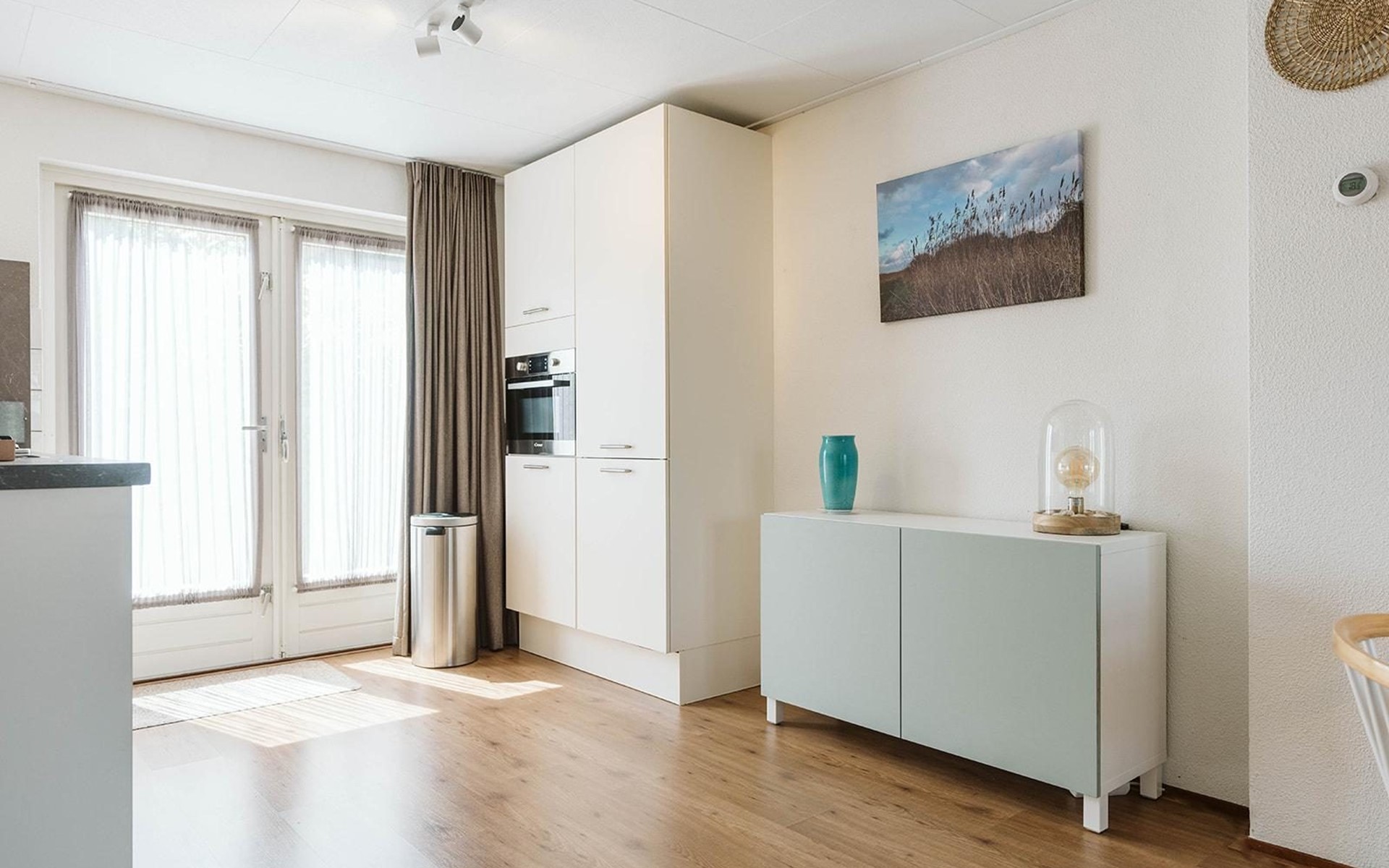 De eettafel is ruim en heeft 6 stoelen. De open keuken is voorzien van alles wat u nodig heeft om lekkere maaltijden te bereiden.