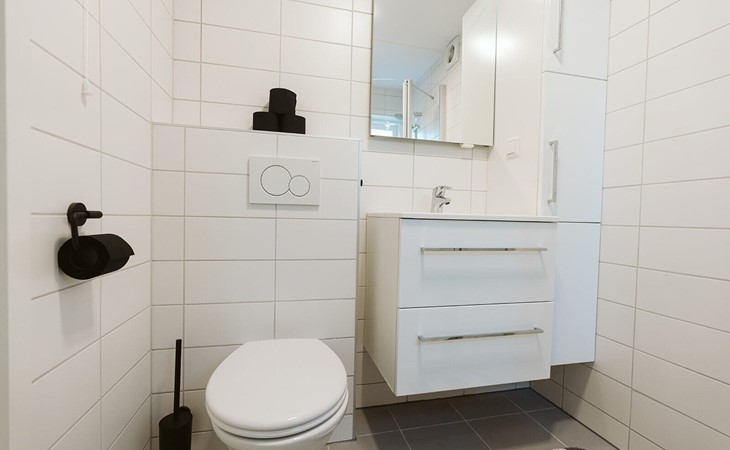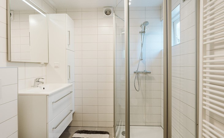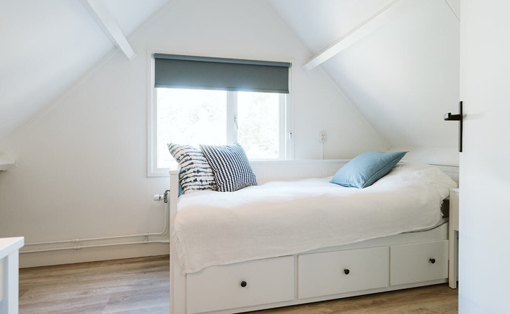 De badkamer is beneden en heeft een douche, wasbak en toilet. Op de begane grond is één ruime slaapkamer met een 2-persoonsbed 180 x 200, in deze slaapkamer zijn terrasdeuren die leiden naar de tuin. De eerste verdieping heeft 2 slaapkamers waarvan één met een tweepersoonsbed van 180 x 200 en de andere met een 1-persoonsbed van 90 x 200. Campingbedje en kinderstoel kunt u huren