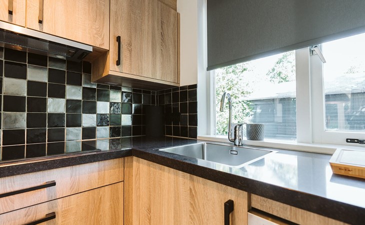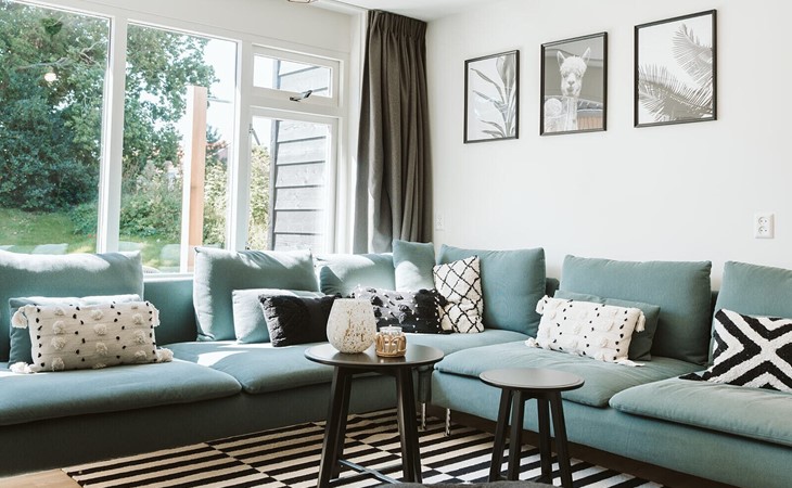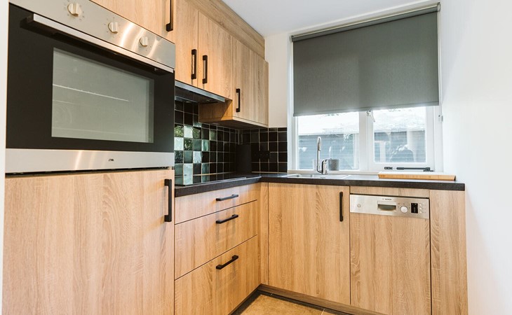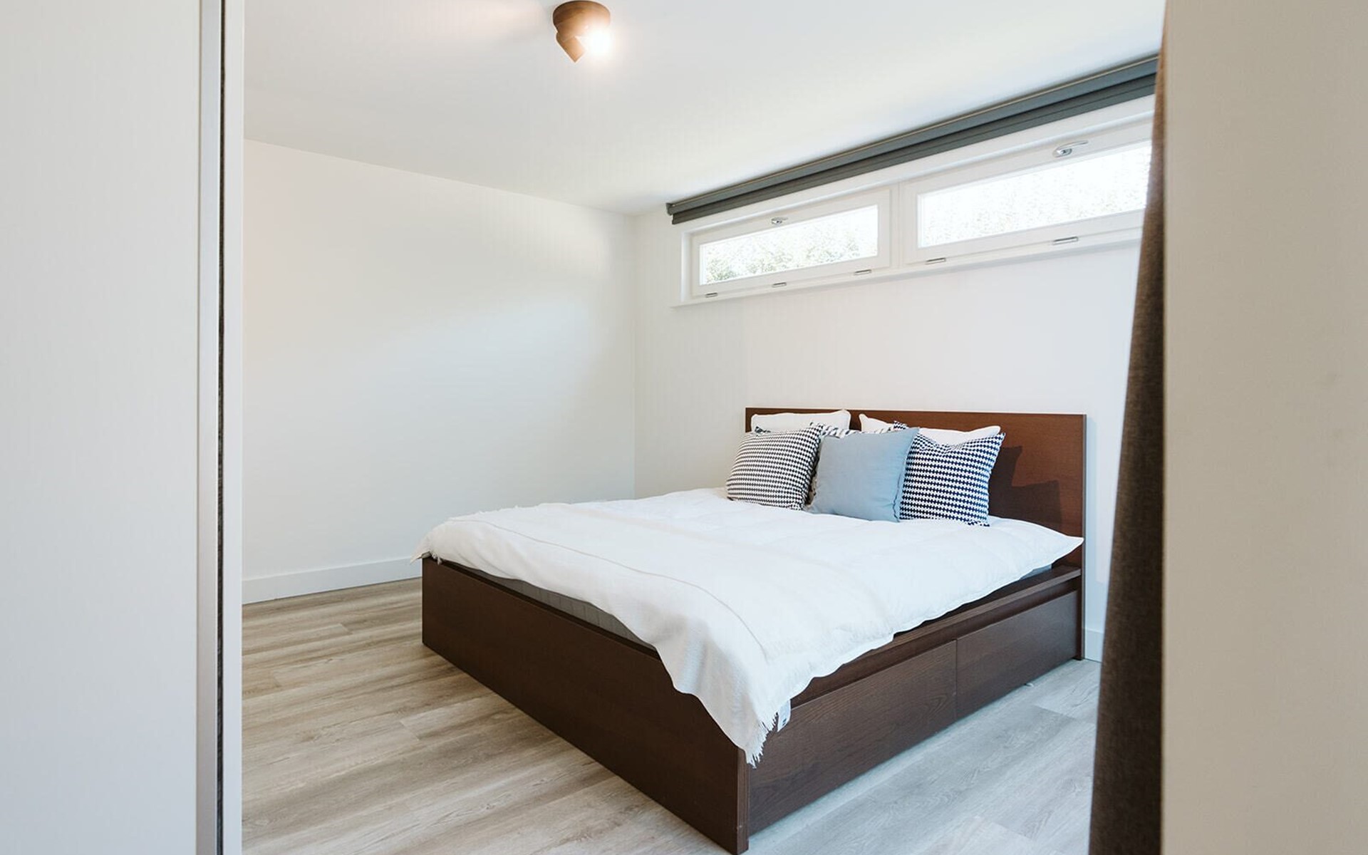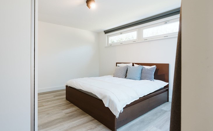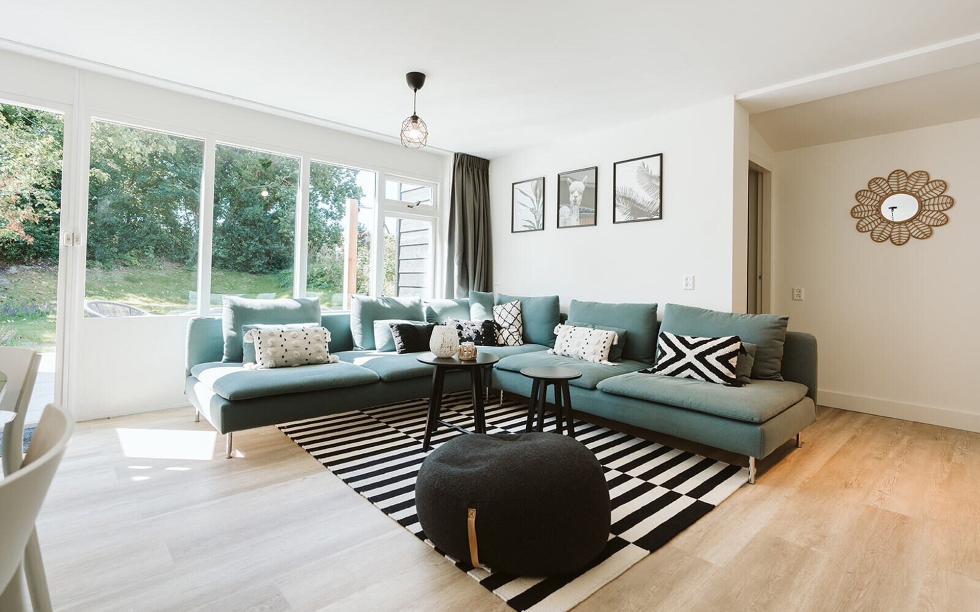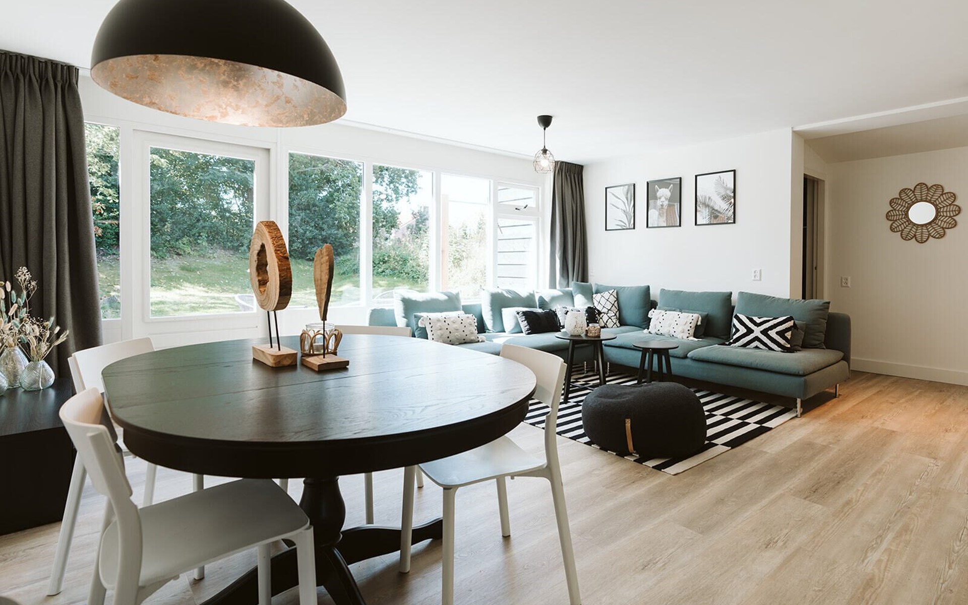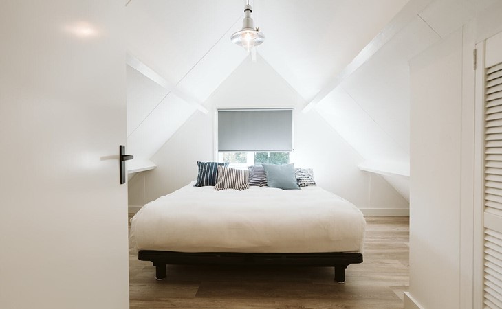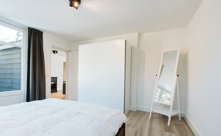 Het vakantiehuis ingericht met luxe materialen, fijne bedden van hoge kwaliteit, perfect afgewerkte keuken en een mooie nieuwe douche in de ruime badkamer.