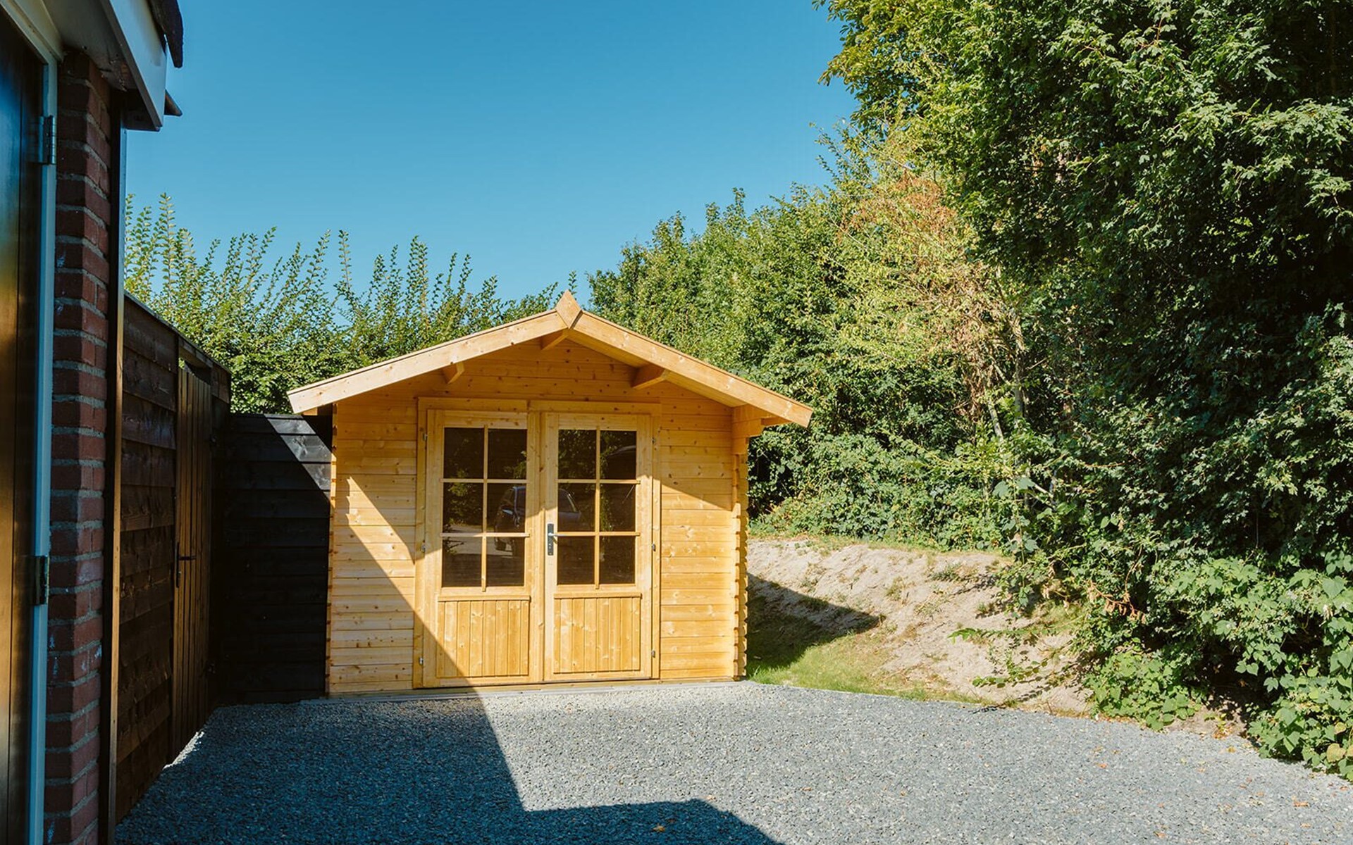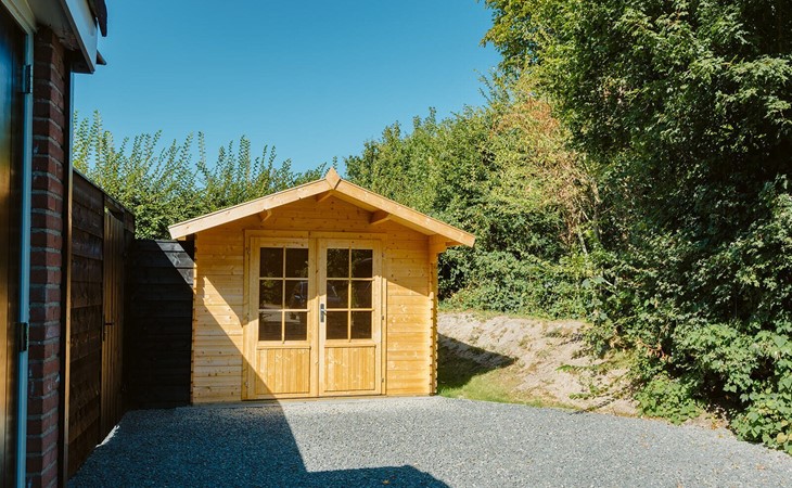 Naast de woning vindt u een blokhut die afsluitbaar is waar u uw fietsen kunt stallen en opladen.