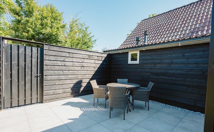 Er staat een tafel met 4 stoelen in een fijne schaduwhoek aan de zijkant van het huis en op het terras voor het huis staat een tuinbankje met 2 stoelen, het woonoppervlakte van de woning is 90 m2. Er is een parkeerplaats voor 2 auto's, indien u met meerdere auto's wilt arriveren dan is hiervoor plaats op de algemene parkeerplaats.
