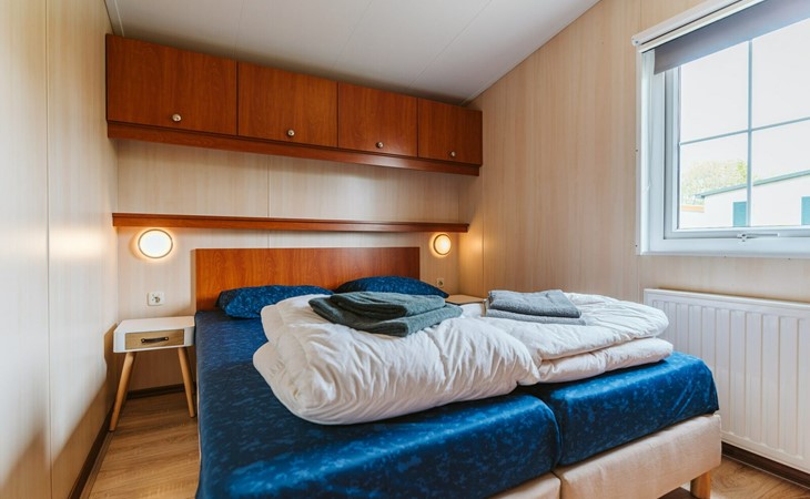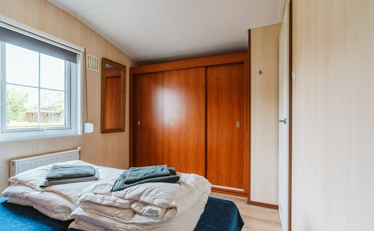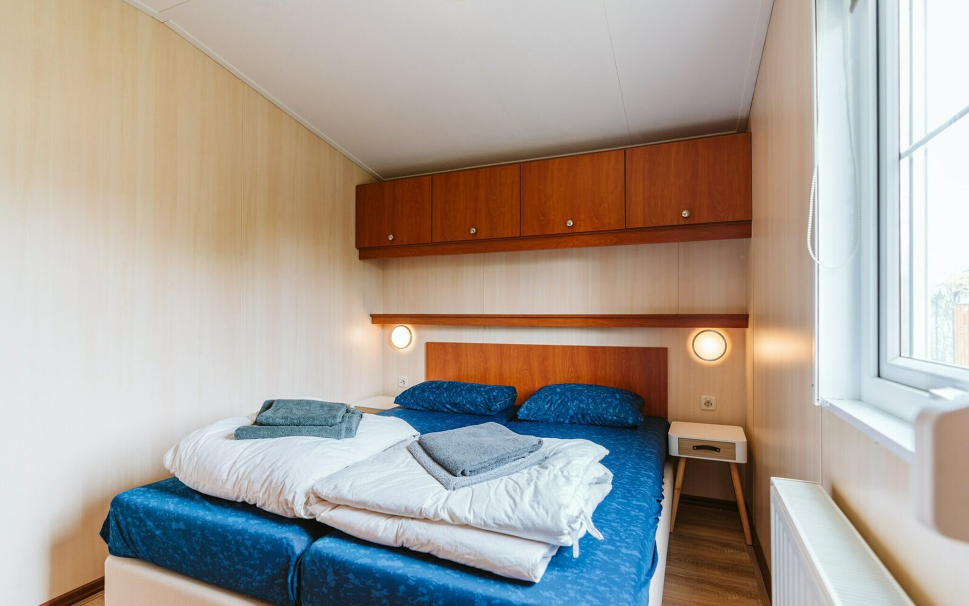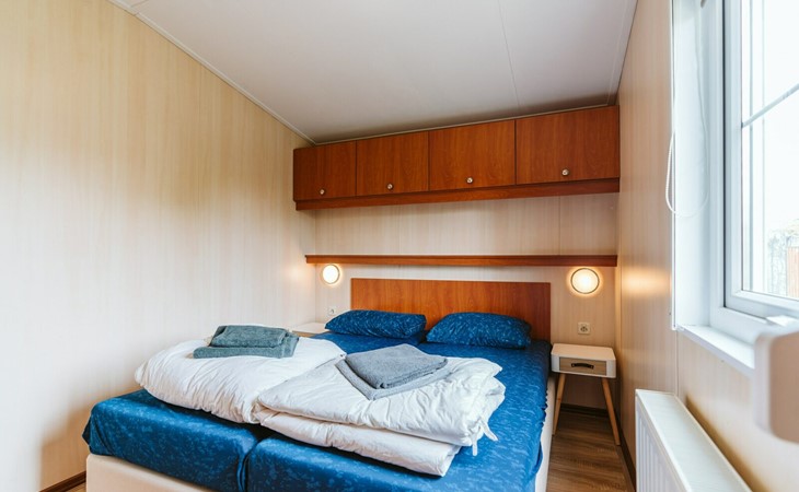 Er zijn 2 tweepersoons slaapkamers. De grote slaapkamer heeft een twee persoonbed met 2 aparte matrassen (80 x200) en een grote schuifdeurkast. De slaapkamer is tevens voorzien van een rolluik.