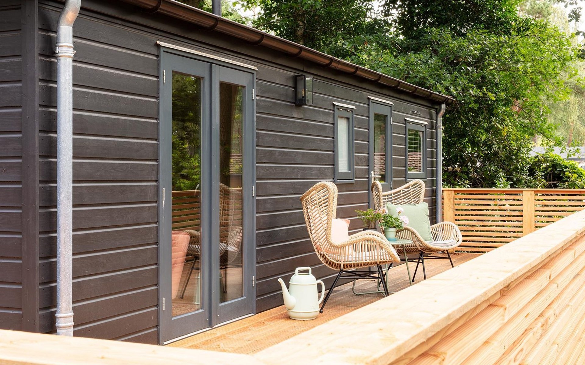 Aan de rand van het bos, de wilde konijntjes en andere dieren die zich regelmatig lieten zien, luxe en comfort van het huisje.