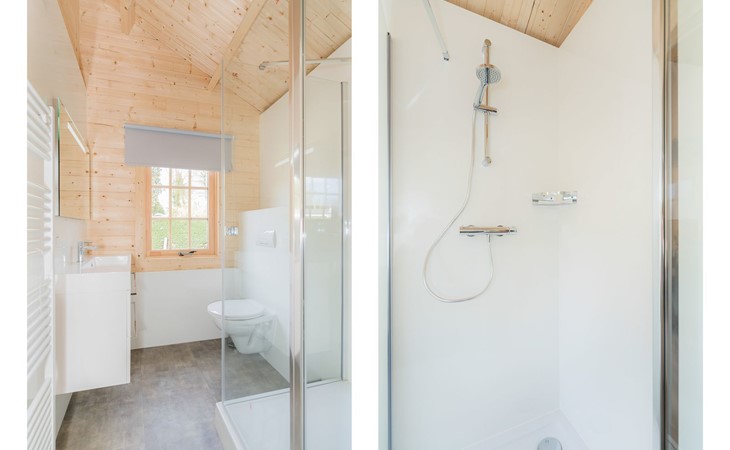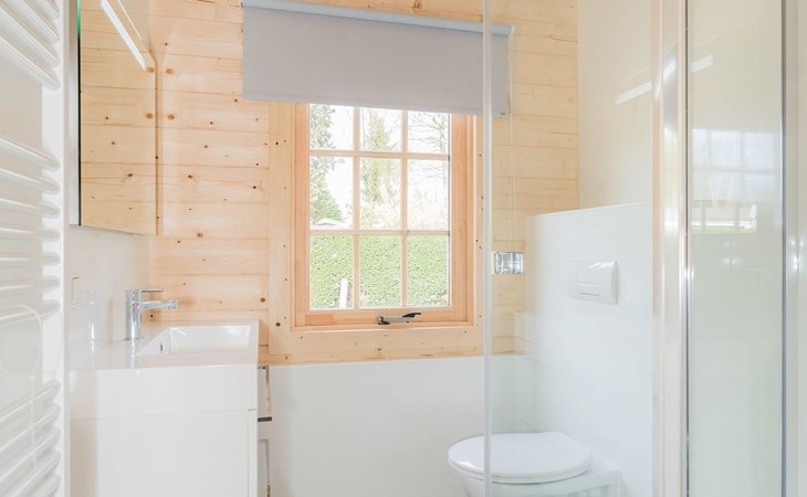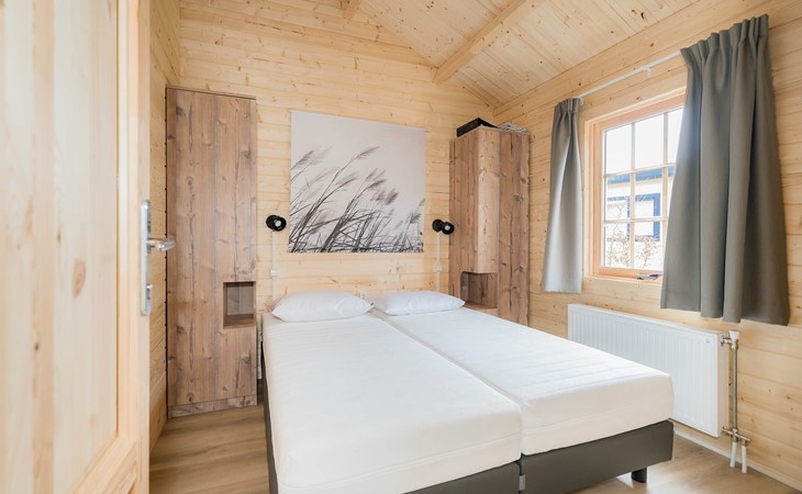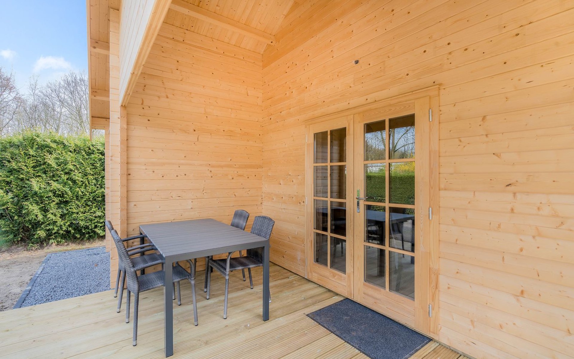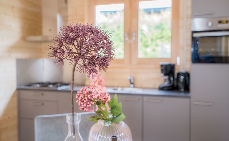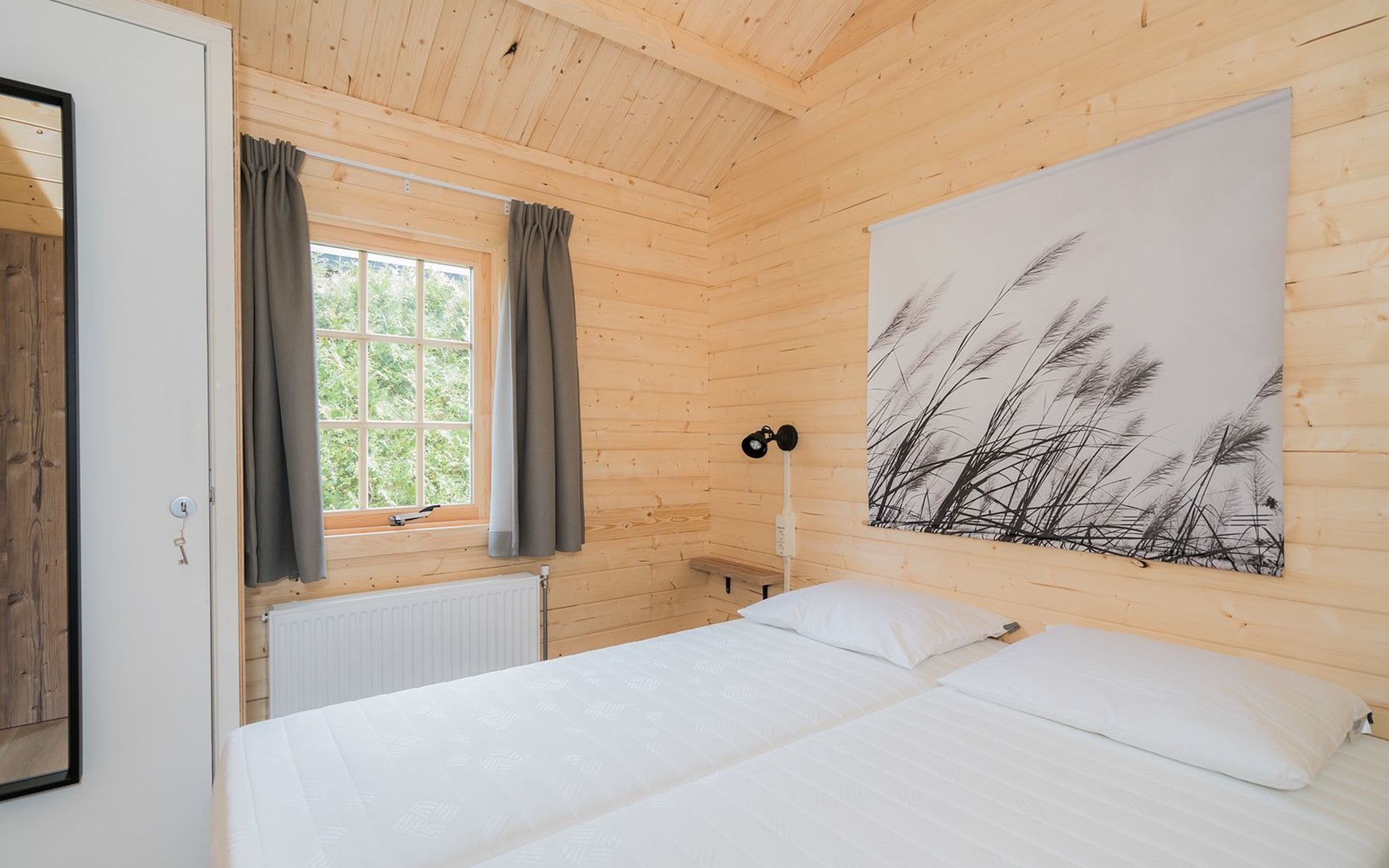 Huckle Berry Fin Lodge is een houten lodge met 2 slaapkamers, living en een complete keuken.