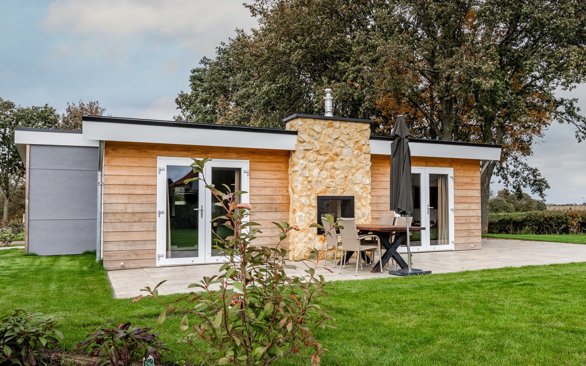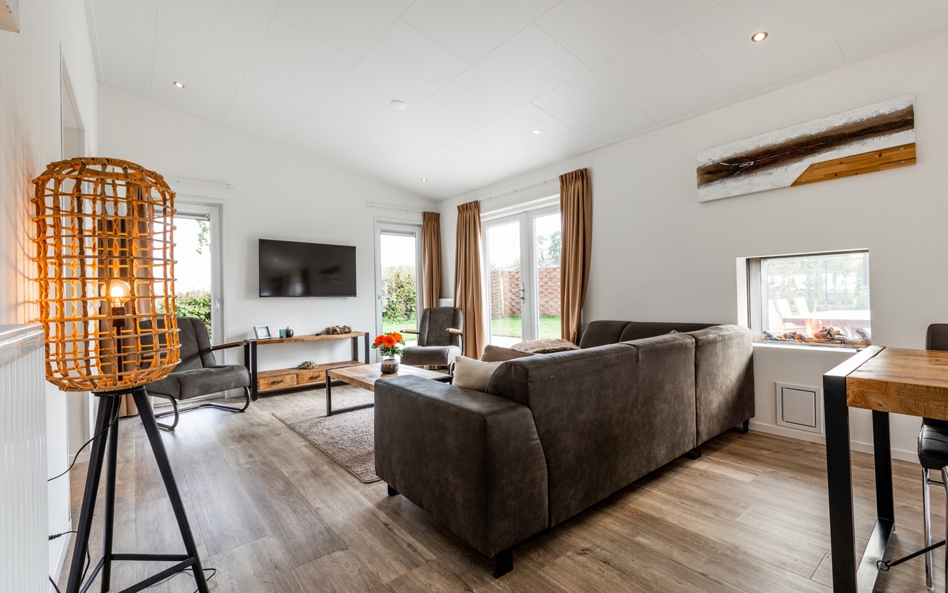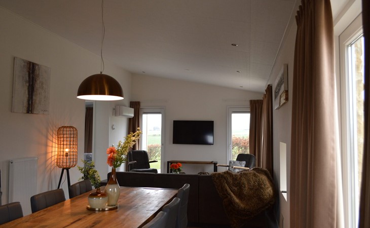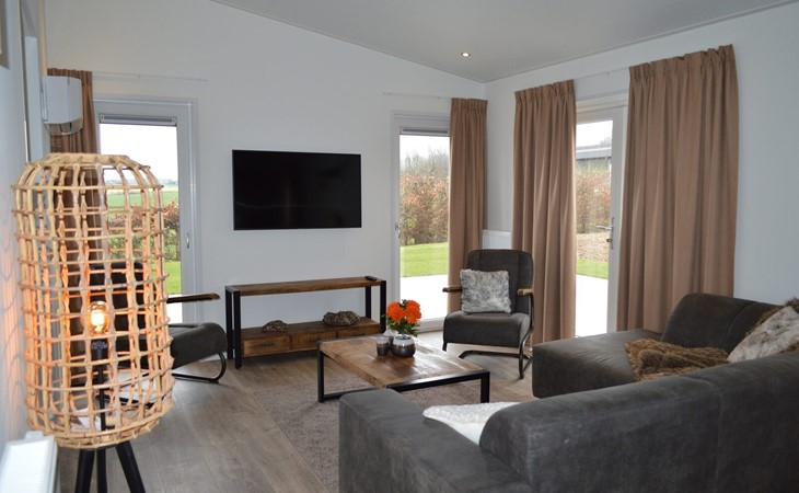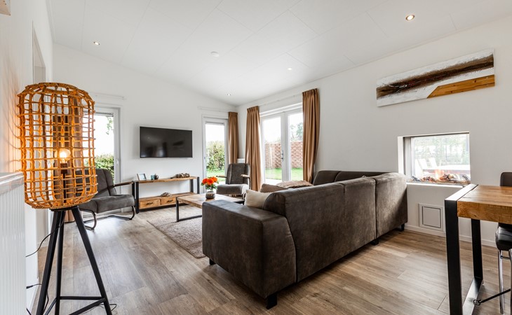 Dit luxe vakantiehuis van 75m2 is geschikt voor 6 personen. De woning heeft 3 slaapkamers (2*2 eenpersoonsbedden, 1 stapelbed), een badkamer met wastafel en toilet. Tevens is er een apart toilet. In de ruime en lichte living met doorkijkgashaard kunt u heerlijk ontspannen. In de open keuken met alle denkbare inbouwapparatuur kunt u een heerlijke maaltijd op tafel zetten. Op het ruime terras, voorzien van tuinmeubilair, kunt u de heerlijk zomerse dagen doorbrengen.