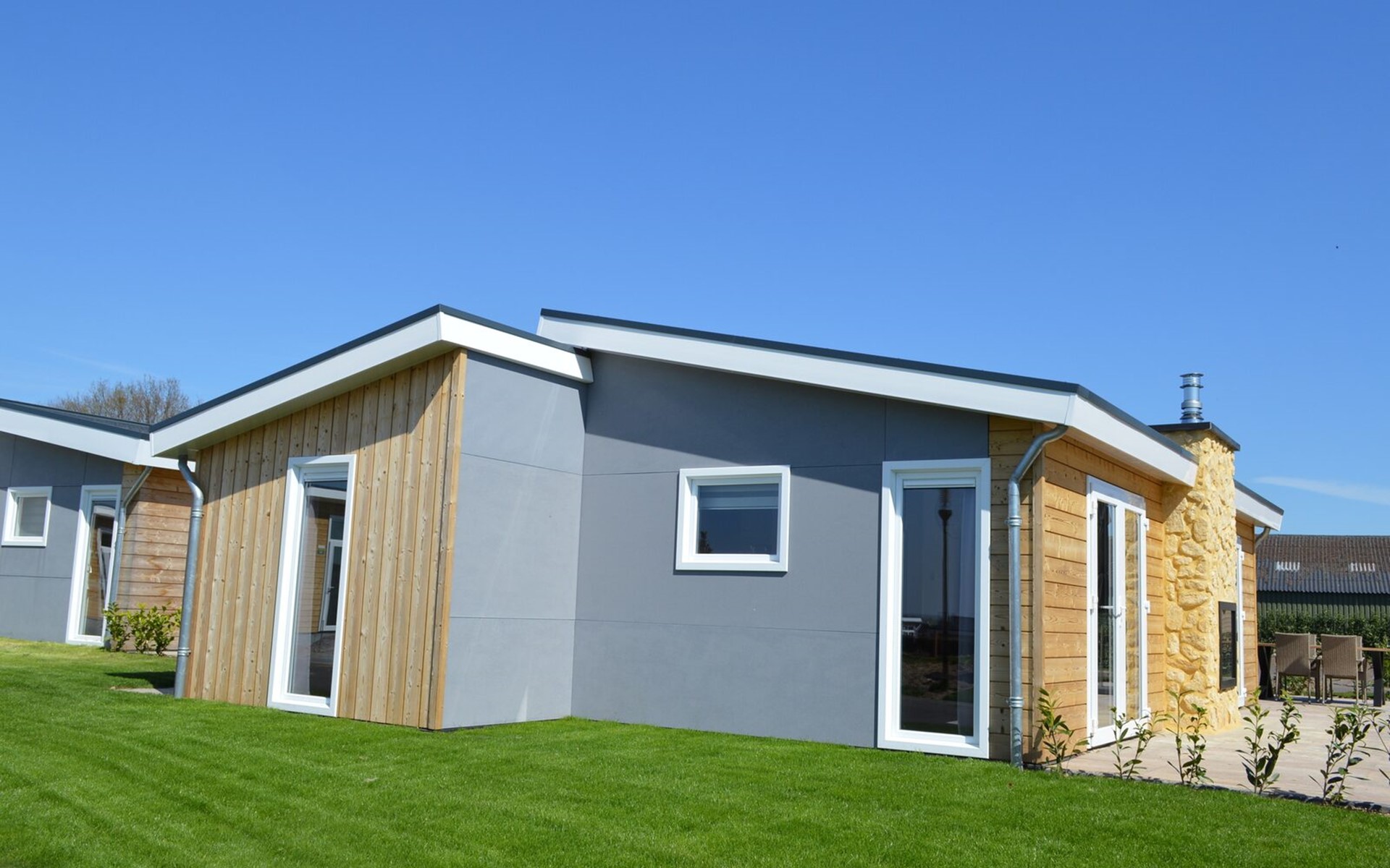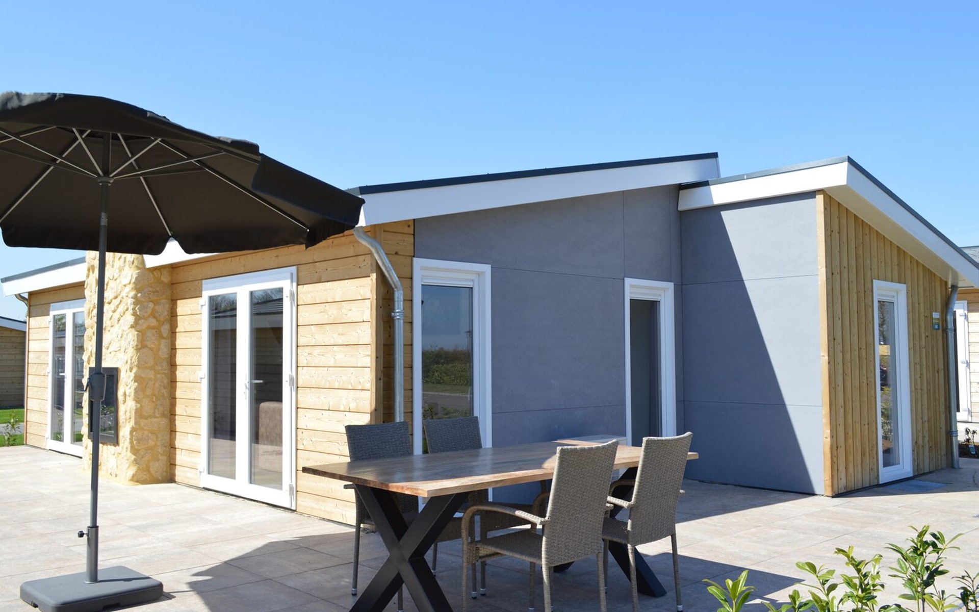Dit luxe vakantiehuis van 75m2 is geschikt voor 4 personen. De woning heeft 2 slaapkamers (2*2 eenpersoonsbedden), twee badkamers. Een badkamer met douche, dubbele wastafel en toilet. Een tweede badkamer met douche wastafel en apart toilet. In de ruime en lichte living met doorkijkgashaard kunt u heerlijk ontspannen. In de open keuken met alle denkbare inbouwapparatuur kunt u een heerlijke maaltijd op tafel zetten. Op het ruime terras, voorzien van tuinmeubilair, kunt u de heerlijk zomerse dagen doorbrengen.