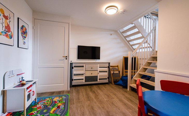In het souterrain is een leuke speelkamer voor de kids met Smart TV, Xbox, speelgoed en een tweede koelkast.