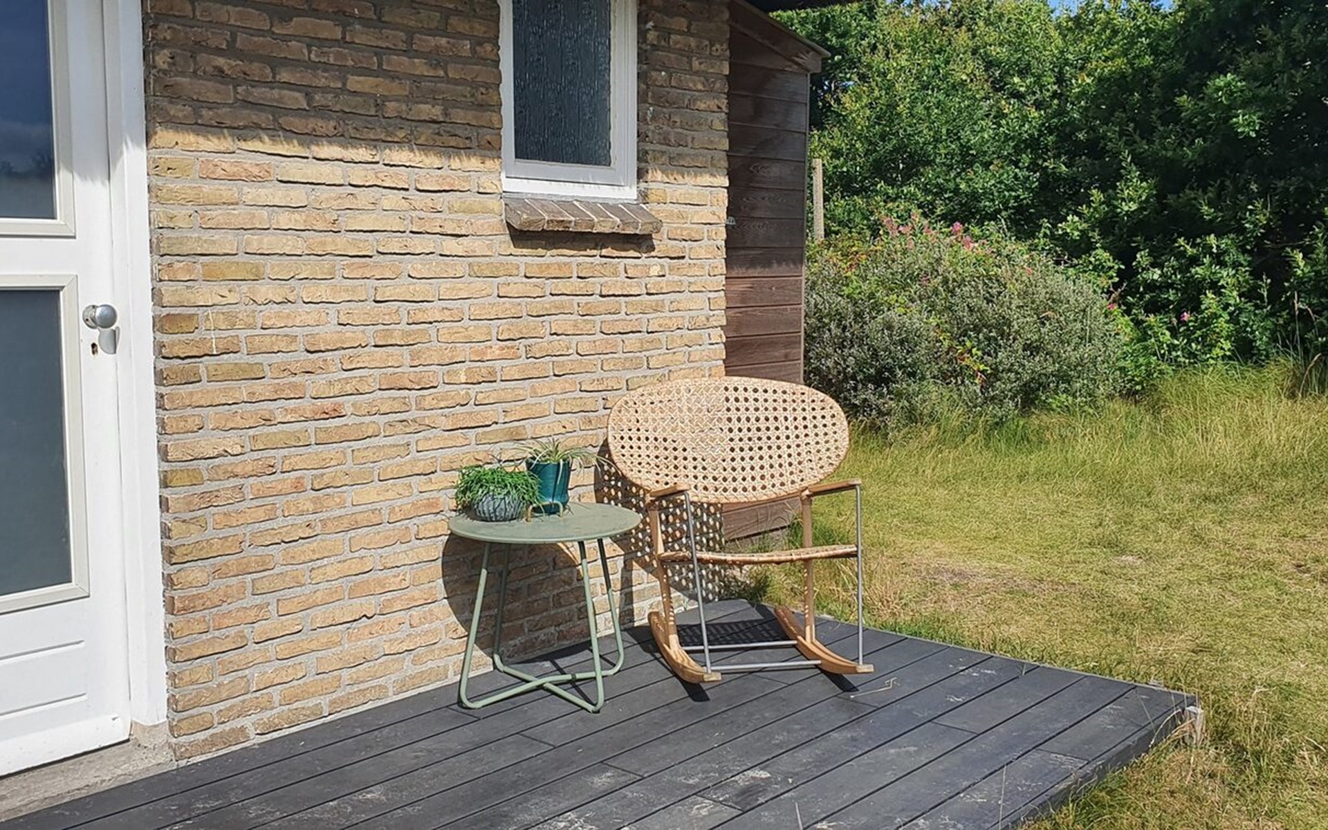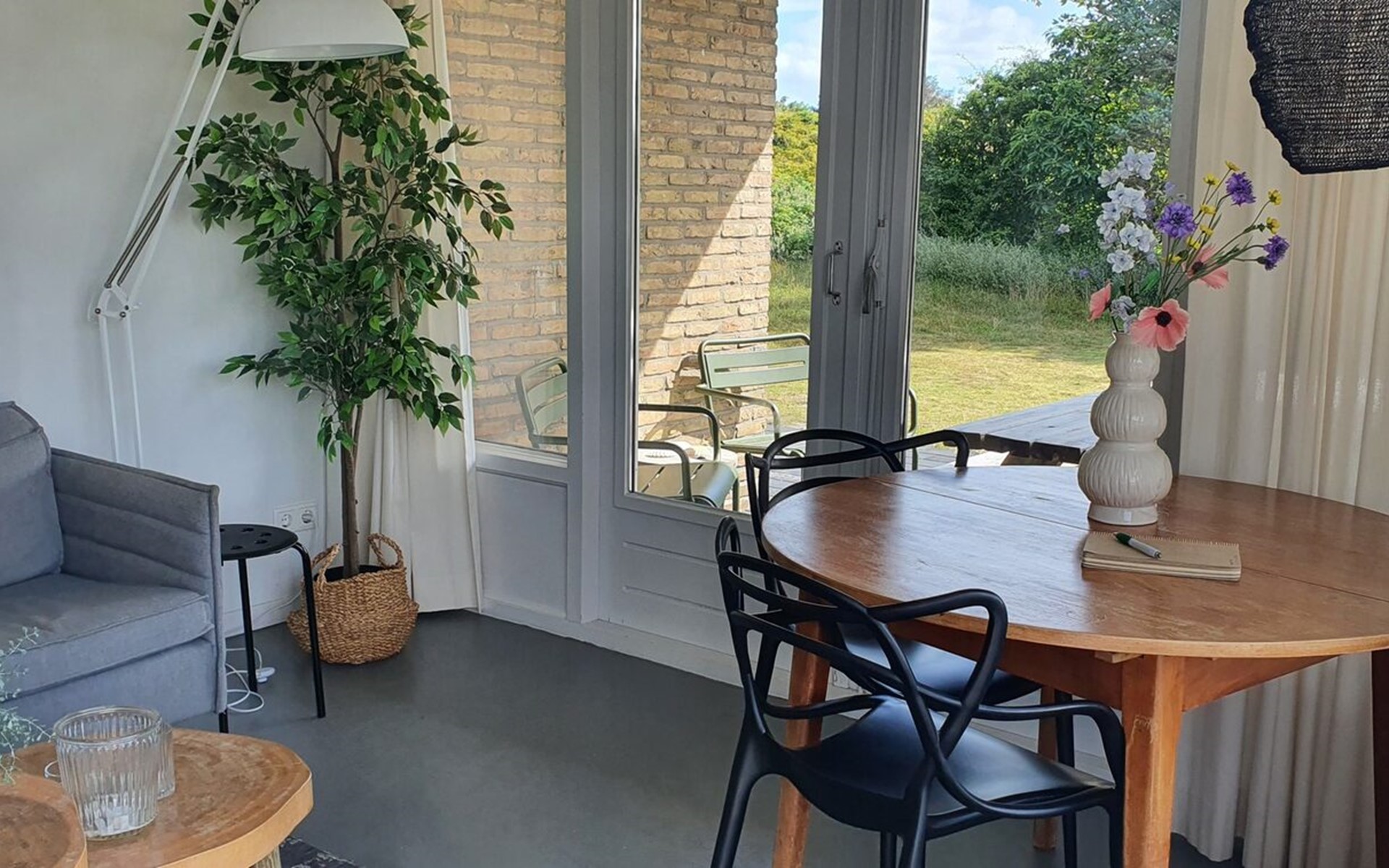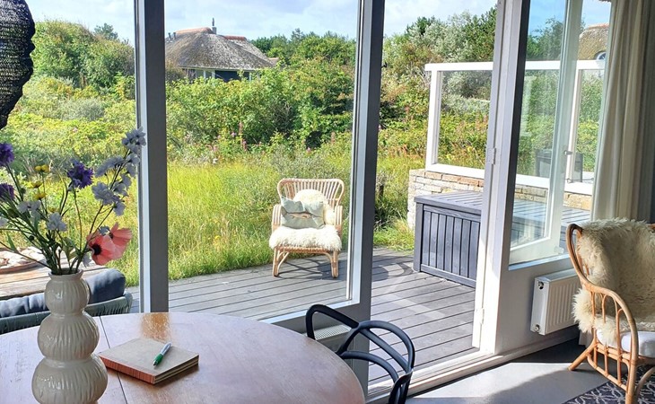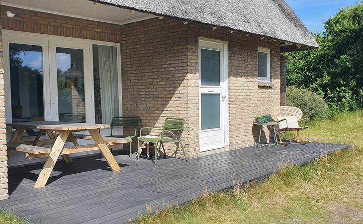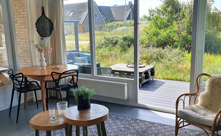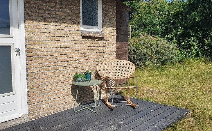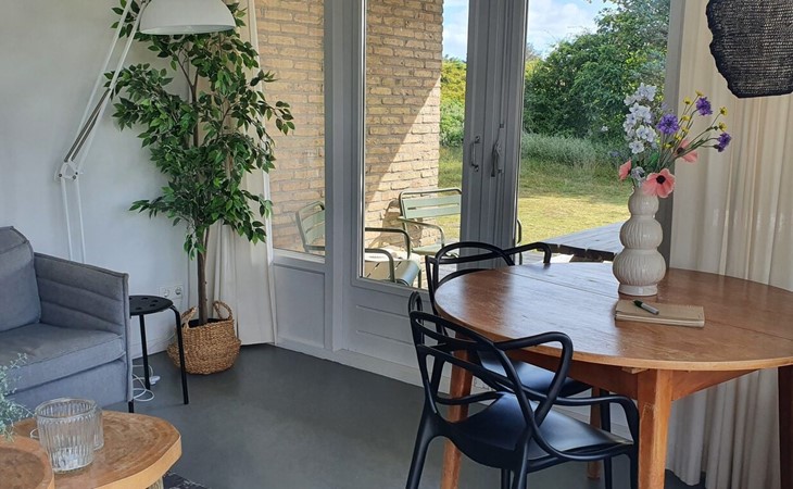 Dit 2 onder 1 kap huisje is klein maar zeer praktisch en leuk ingericht. Het heeft een lichte woonkamer, flatscreentelevisie (met dvd-speler en diverse dvd's) en deur naar het terras. De keuken met vaatwasser is deels open en heeft een 6 persoons eettafel.