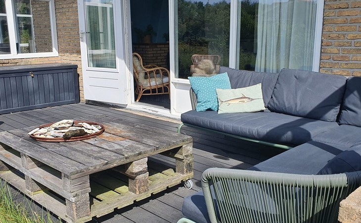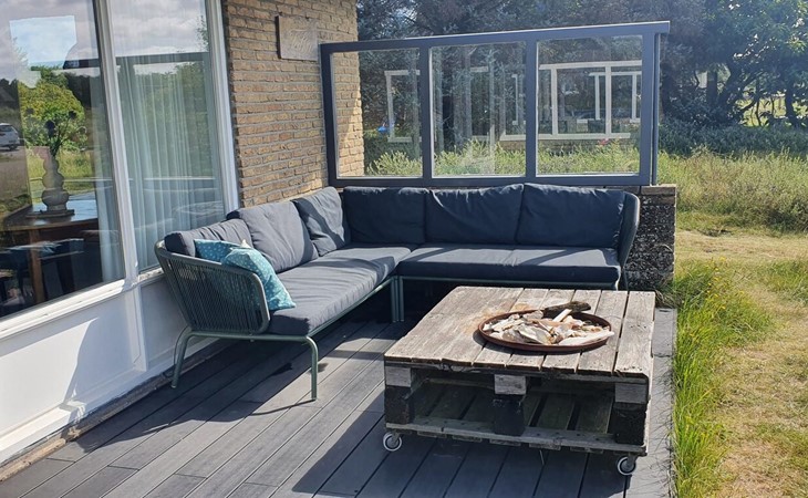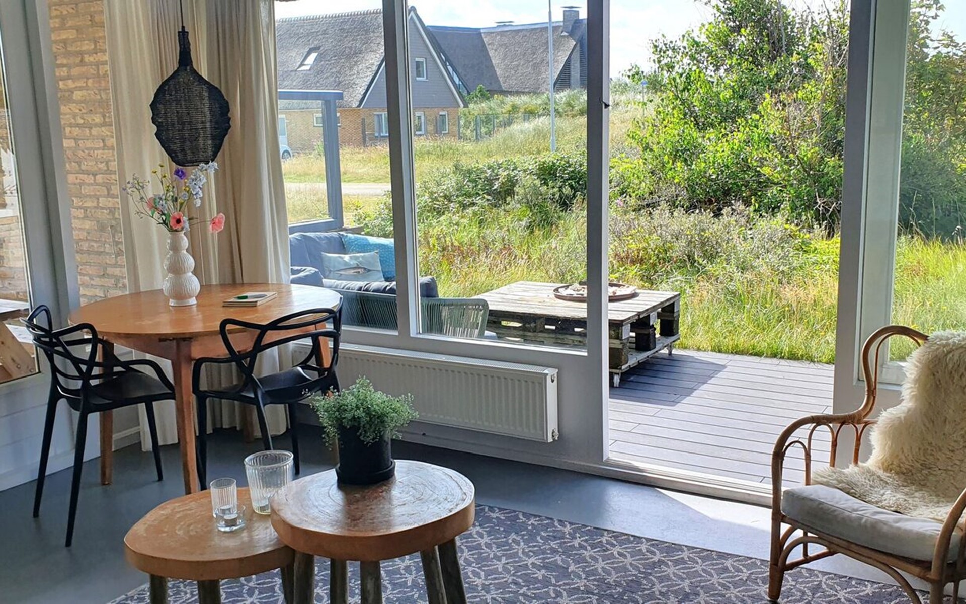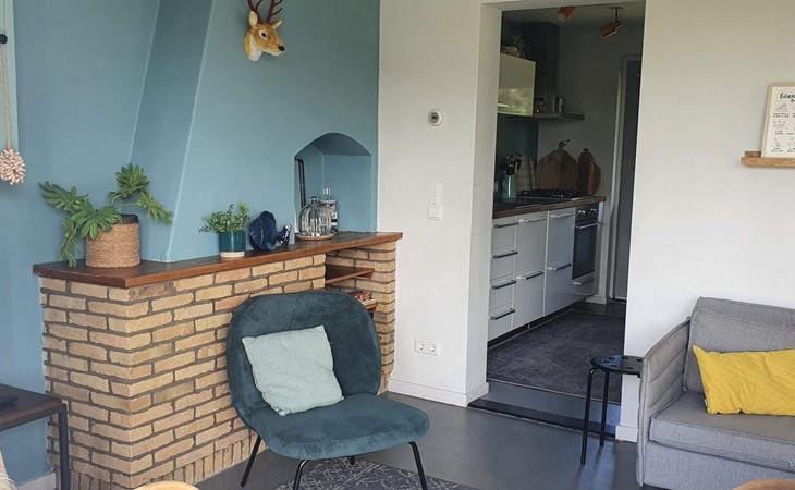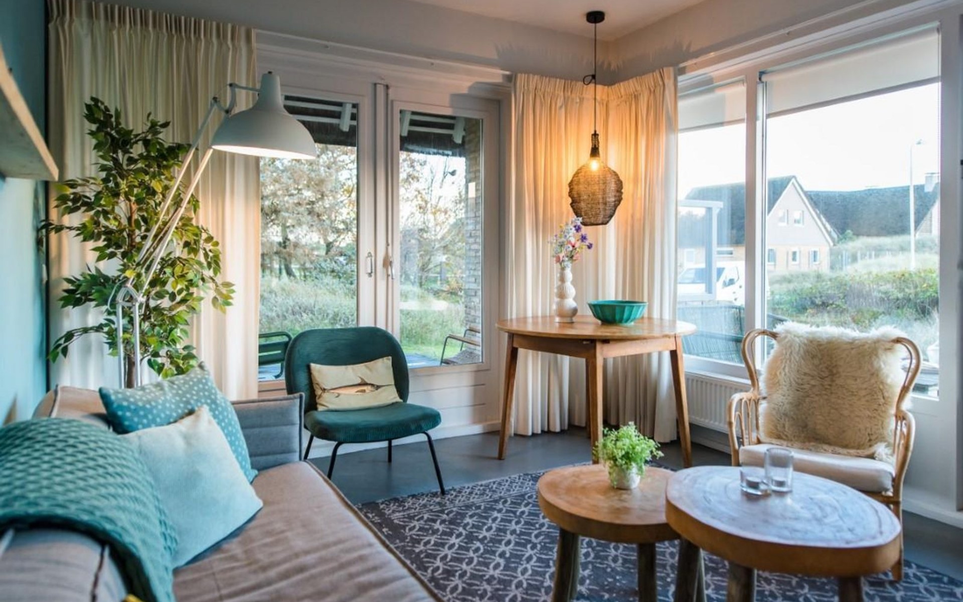 Dit 2 onder 1 kap huisje is klein maar zeer praktisch en leuk ingericht. Het heeft een lichte woonkamer, flatscreentelevisie (met dvd-speler en diverse dvd's) en deur naar het terras. De keuken met vaatwasser is deels open en heeft een 6 persoons eettafel.
