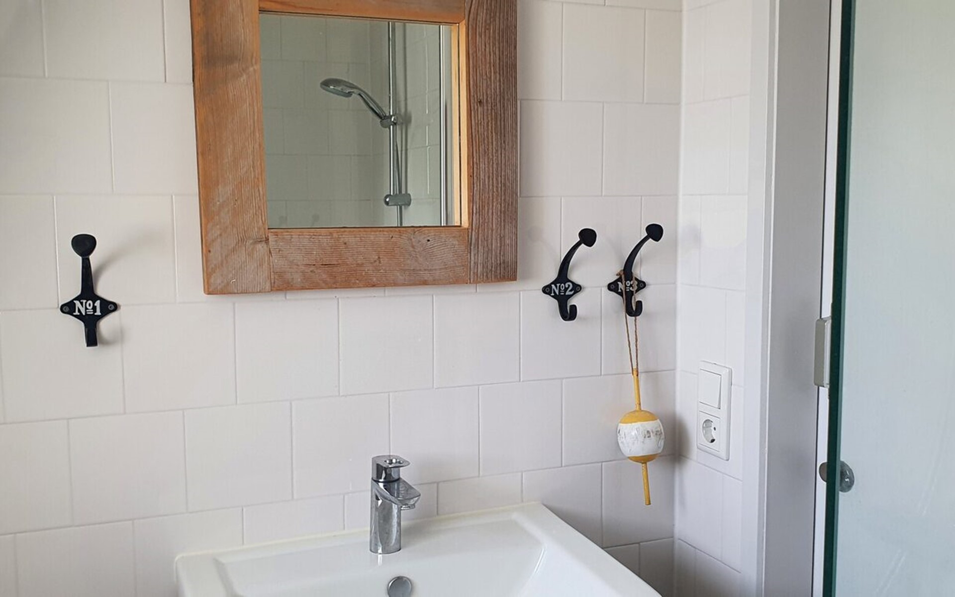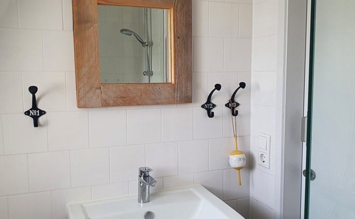 Boven bevinden zich 3 slaapkamers, elk voor 2 personen waarvan 1 met wastafel. Tevens bevindt zich hier ook ook de compacte badkamer met douche, wastafel en toilet.