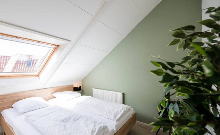 Aansluitend is de open slaapkamer voorzien van heerlijk Swiss Sense 2 persoons bed (200x180cm) welke elektrisch verstelbaar is.