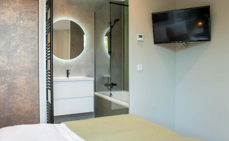 De hottub, sauna en complete badkamer waten heel fijn Evt verbetering: Ik miste alleen een wasrekje om de badlakens na hottub buiten te kunnen hangen en aan welke kant je de auto van het huisje moet parkeren was niet duidelijk (misschien op p-plek huisje nr zetten?) Verder TOP park??