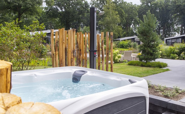 Let op: de tuin indeling, woning inrichting en kleurstelling van de Bos Lodge 55 4 personen (jacuzzi) die u kiest, kan afwijken van de getoonde afbeeldingen op de website.