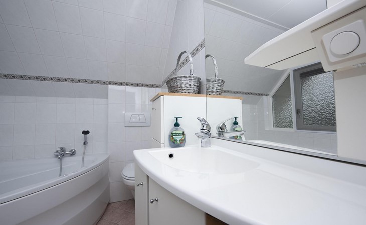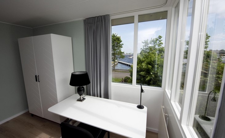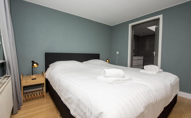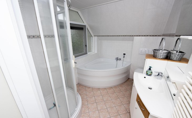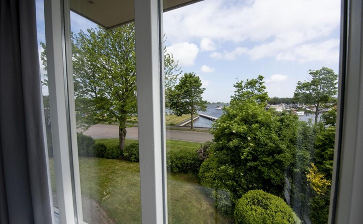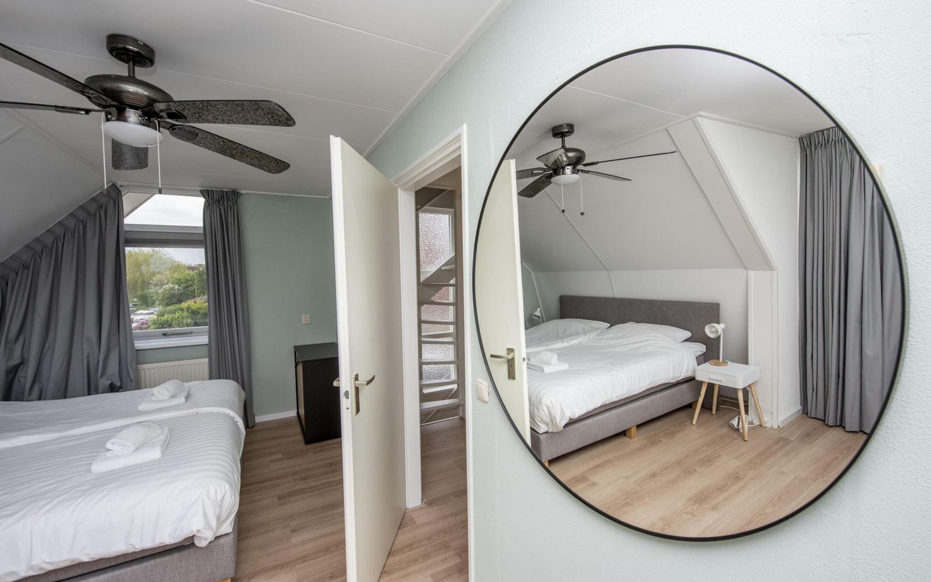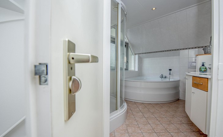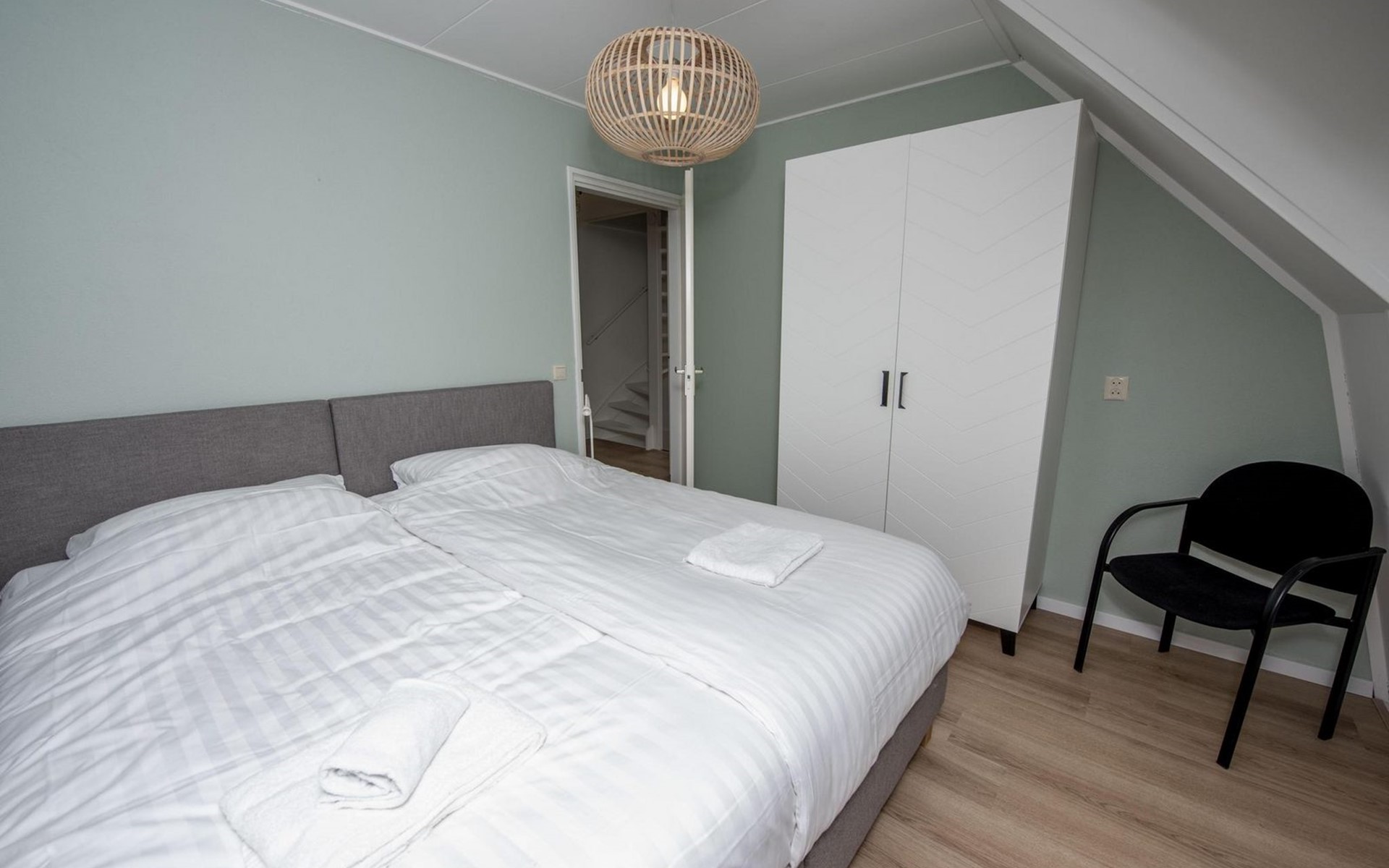 In de accommodatie zijn 4 slaapkamers met ruimte voor 8 personen. De eerste slaapkamer is gelegen op de begane grond. Door middel van een aanbouw is een ruime slaapkamer gecreëerd met hieraan een ensuite badkamer. De slaapkamer is voorzien van een boxspring tweepersoonsbed (180x200cm) en compleet ingericht met nachtkastjes, bedlampjes en een ruime kast om kleding op te bergen. De aangrenzende badkamer (7,5m2) is ingericht met een wastafelmeubel met dubbele kraan, inloopdouche met regendouche, een extra toilet en een designradiator. Via de woonkamer kom je via een deur bij de trap naar de eerste etage, hier is tevens het toilet te vinden. Op de eerste etage zijn nog eens 2 slaapkamers en een badkamer te vinden. Alle slaapkamers zijn voorzien van een tweepersoons boxspring met ieder twee nachtkastjes, bedlampjes en een kledingkast. Een van de slaapkamers op de eerste verdieping heeft zelfs een fijn bureau waardoor je in deze vakantiewoning ook heerlijk rustig kan werken en dit met vakantie kan combineren. De tweede badkamer (6m2) met een royaal hoekbad, wastafelmeubel en losse douchecabine bevat ook nog een extra toilet. Via de open trap kom je bij de derde slaapkamer op de zolder van de woning met wederom een tweepersoons boxspring, nachtkastjes en bedverlichting, hier is het heerlijk slapen onder het puntdak en het bijzondere ronde raam geeft een uniek doorkijkje op het Sneekermeer.