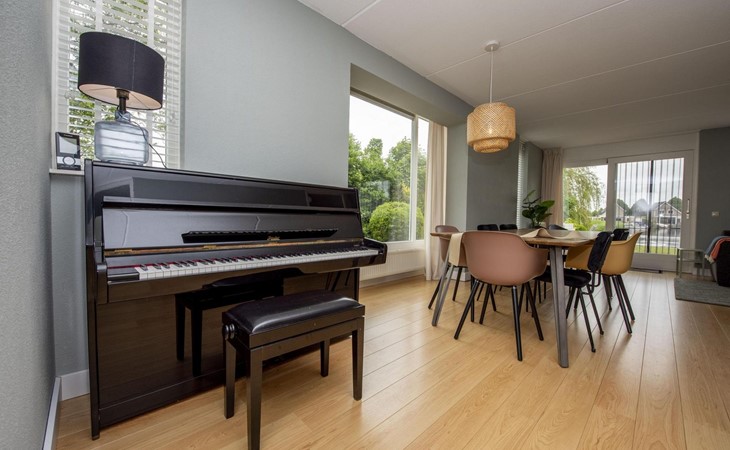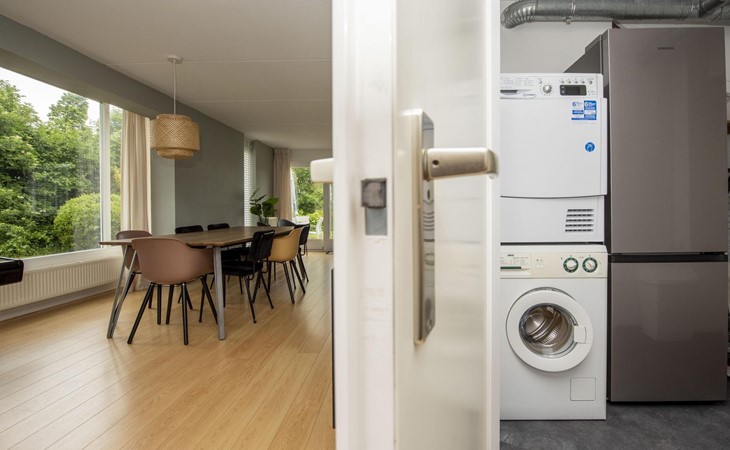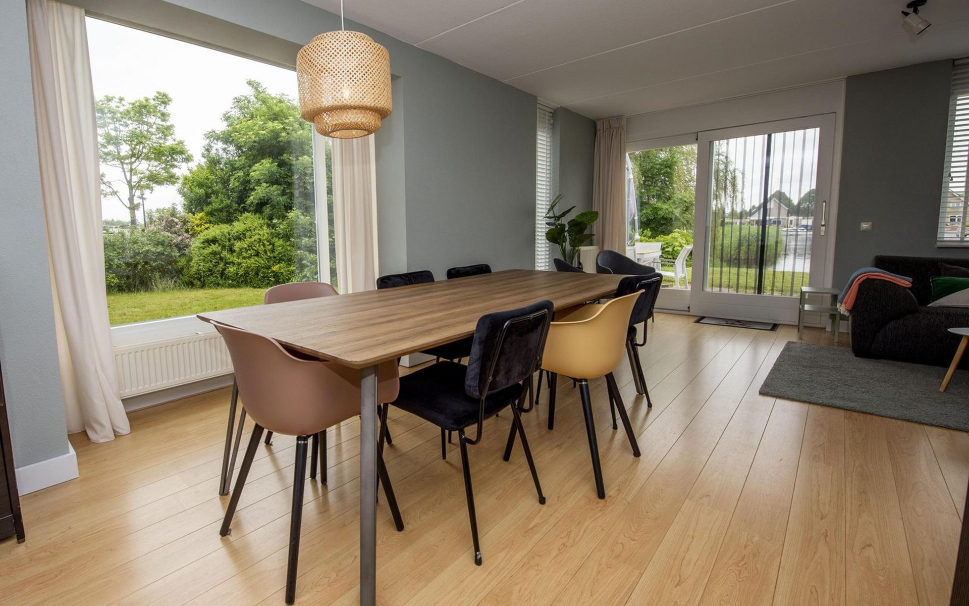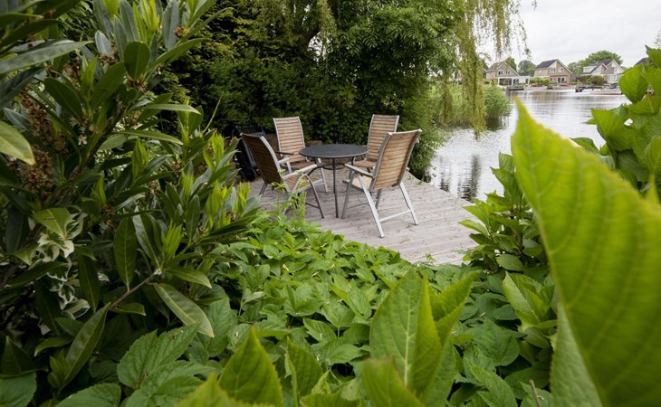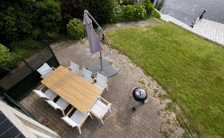 De vakantiewoning ligt op een ruim perceel met oprit. Via de voordeur kom je door de hal uit in de living binnen en kijk je direct in de gezellige woonkamer (30m2) die aan de achterzijde voorzien is van een comfortabel zitgedeelte bij de televisie met een hoekbank en twee losse fauteuils. De grote raampartij en naastgelegen schuifdeur zorgen voor enorm veel lichtinval in de woning. Midden in de living staat een gezellige eethoek met ruimte voor 8 personen en vanuit het direct naastgelegen raam heb je een prachtig uitzicht op de tuin. Aan de voorzijde van de woning is de keuken in hoekopstelling van alle gemakken voorzien. Direct daarnaast is er een bijkeuken met daarin een wasmachine, droger en tweede koel/vriescombinatie. Met een keramische kookplaat, combi-magnetron, vaatwasser, koelkast, vriezer, broodrooster, waterkoker, nespresso en filter-koffiezetapparaat ontbreekt er niets in deze keuken. Deze keuken is zo compleet ingericht dat ook gezellig koken en tafelen in deze accommodatie prima gaat lukken. Is het mooi weer, dan stap je via de schuifpui direct in de tuin met geweldig uitzicht over het Sneekermeer. De aan het water gelegen tuin (216m2, 13,5m breed x 16m diep) ligt op het zuidoosten, bevat een gezellig (4-persoons) zitje bij het water en is voorzien van een eigen aanlegsteiger met zwembadtrap. Het is hier heerlijk tafelen op het terras aan de royale tuin tafel met plaats voor 8 personen.