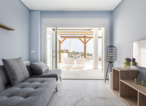 · Ruim gemeubileerd terras, met uitzicht op de zee.