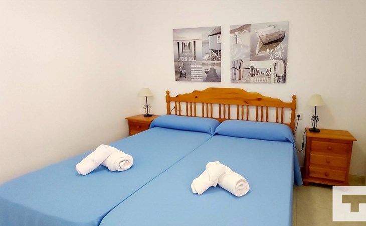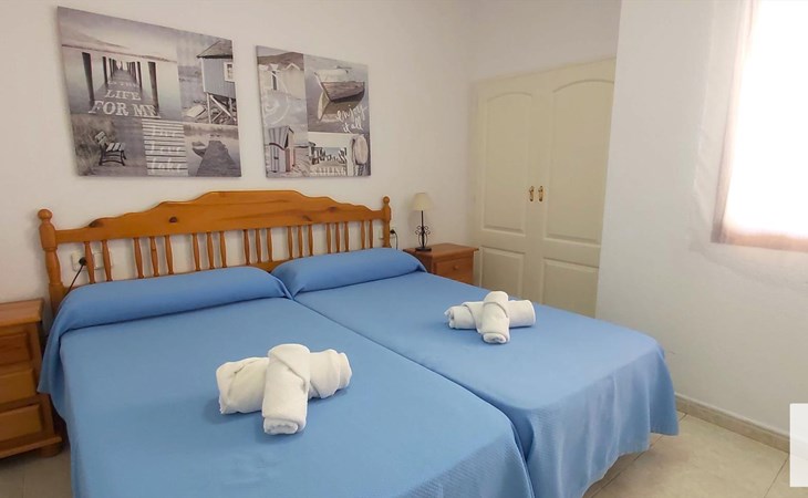 · 1 slaapkamer met twee eenpersoonsbedden.