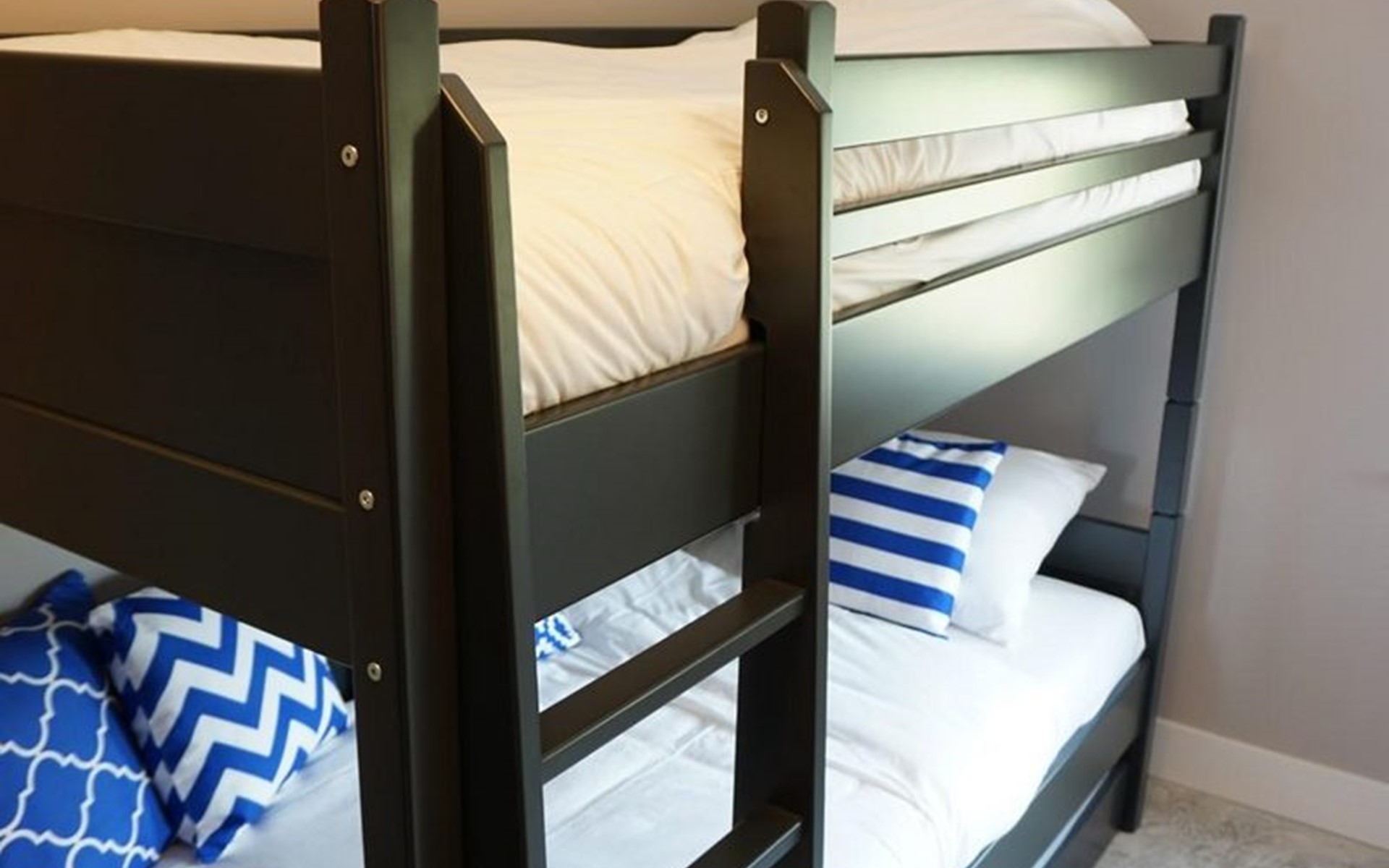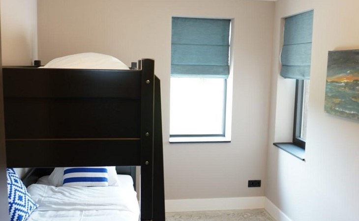 Een 3 persoons kamer met stapelbed (90x200cm). Onder dit bed zit een uitschuif bed (90x200cm), wat zorgt voor de 7e slaapplaats in de villa.
