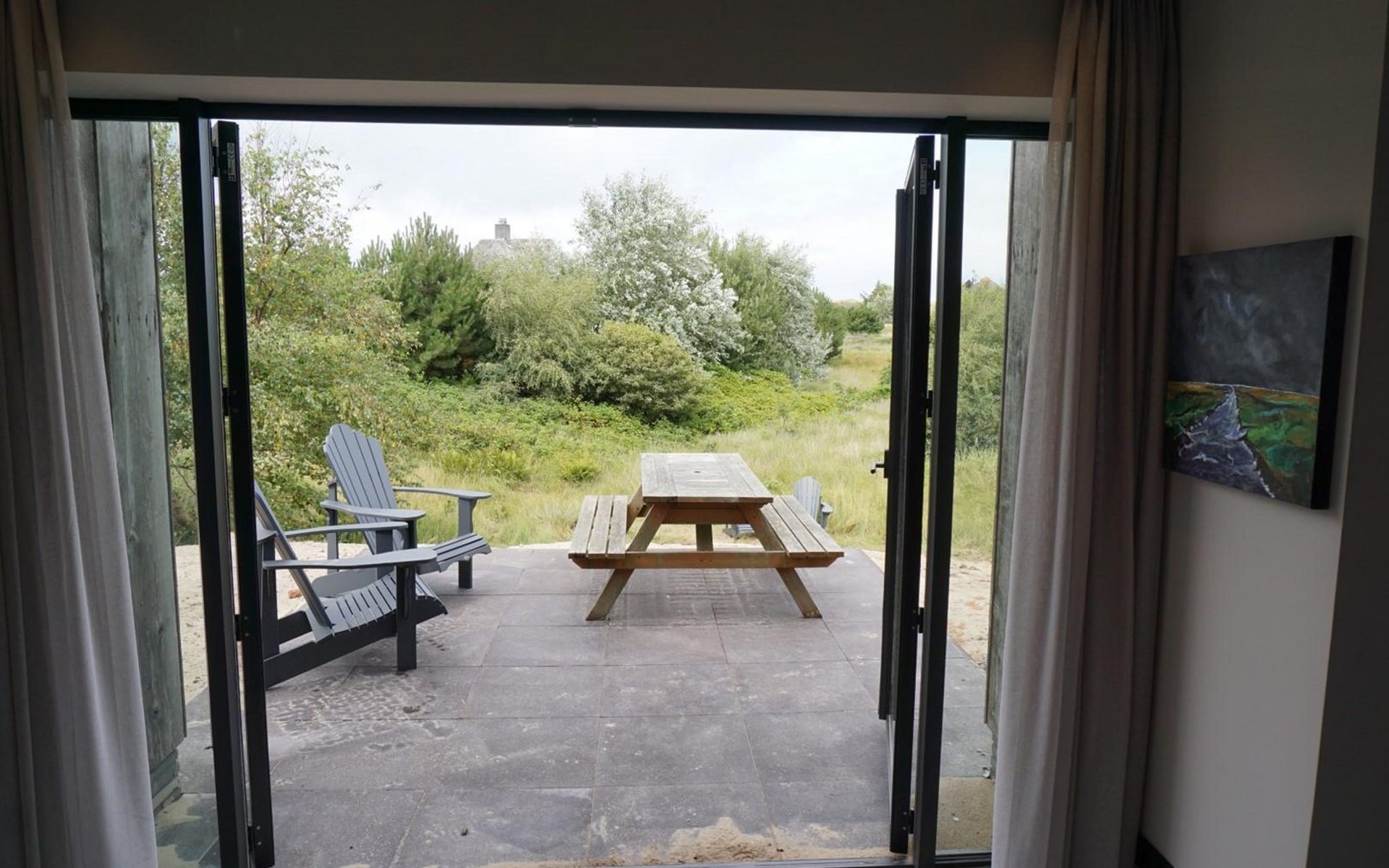 Door de centrale ligging is het hele eiland fantastisch te verkennen. Via een fiets/voet pad steek je zo de duinen door naar het strand. Het dorp en veel winkels zijn slechts 2,5km verderop.