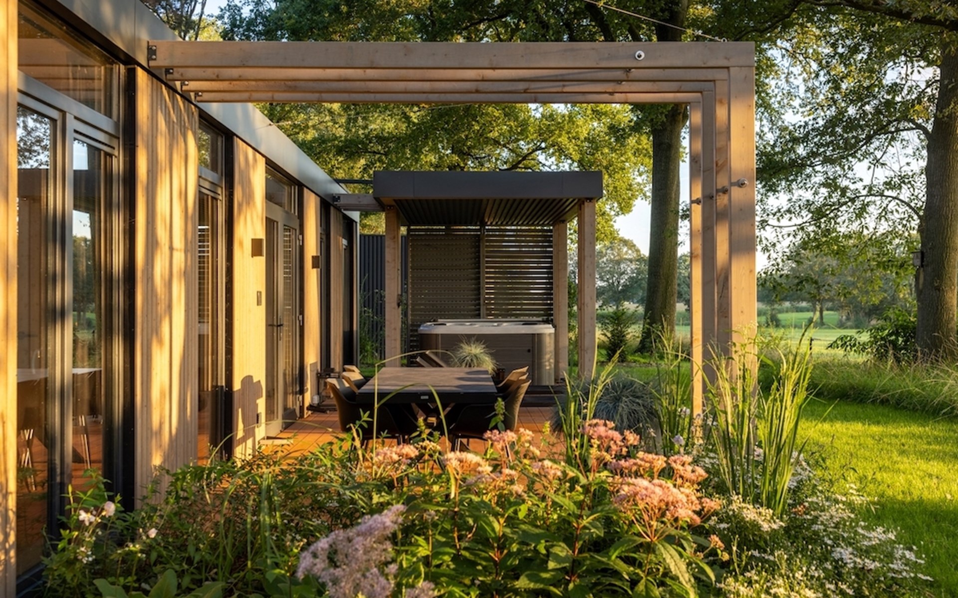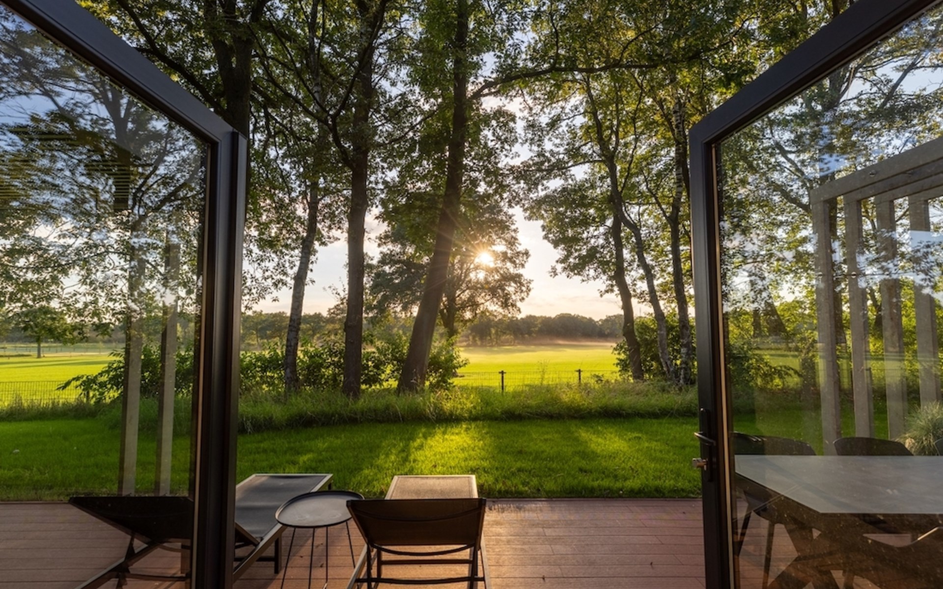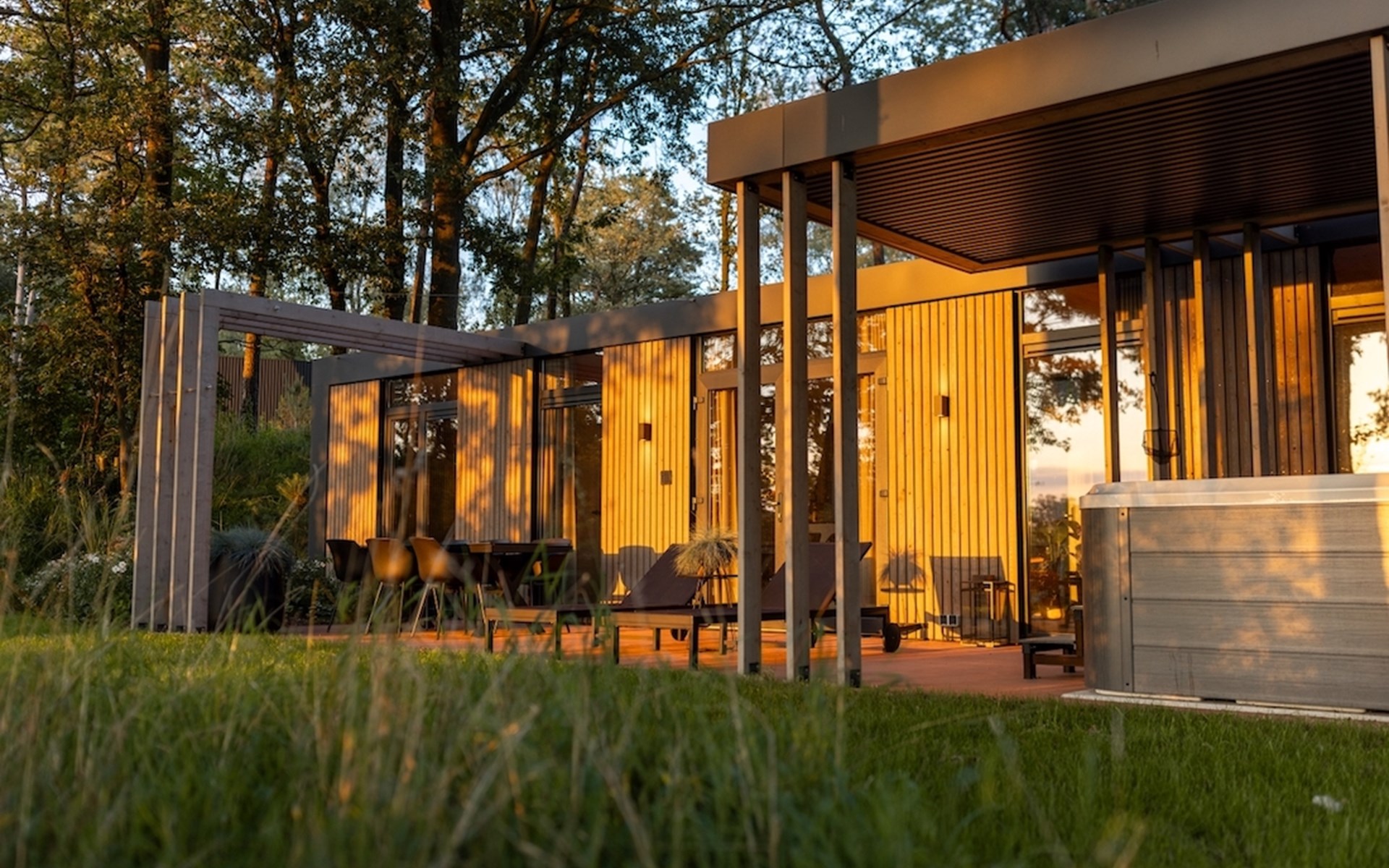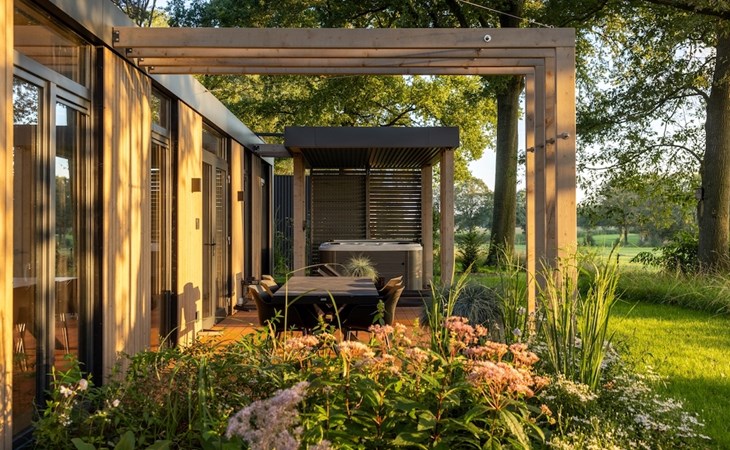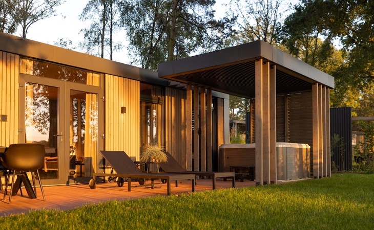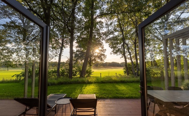 Aan de rand van het dorpje Markelo, op een heuvel met prachtig zicht op Twente, staan 28 vrijstaande Panorama Lodges. Door de glazen façades kijk je uit over het over het glooiende landschap waardoor je ook binnen het gevoel krijgt je midden in de natuur te bevinden. Door de openslaande deuren loop je zo het ruime terras op. Dat is wat ze noemen: groots genieten. Beleef het zelf in een van onze lodges!