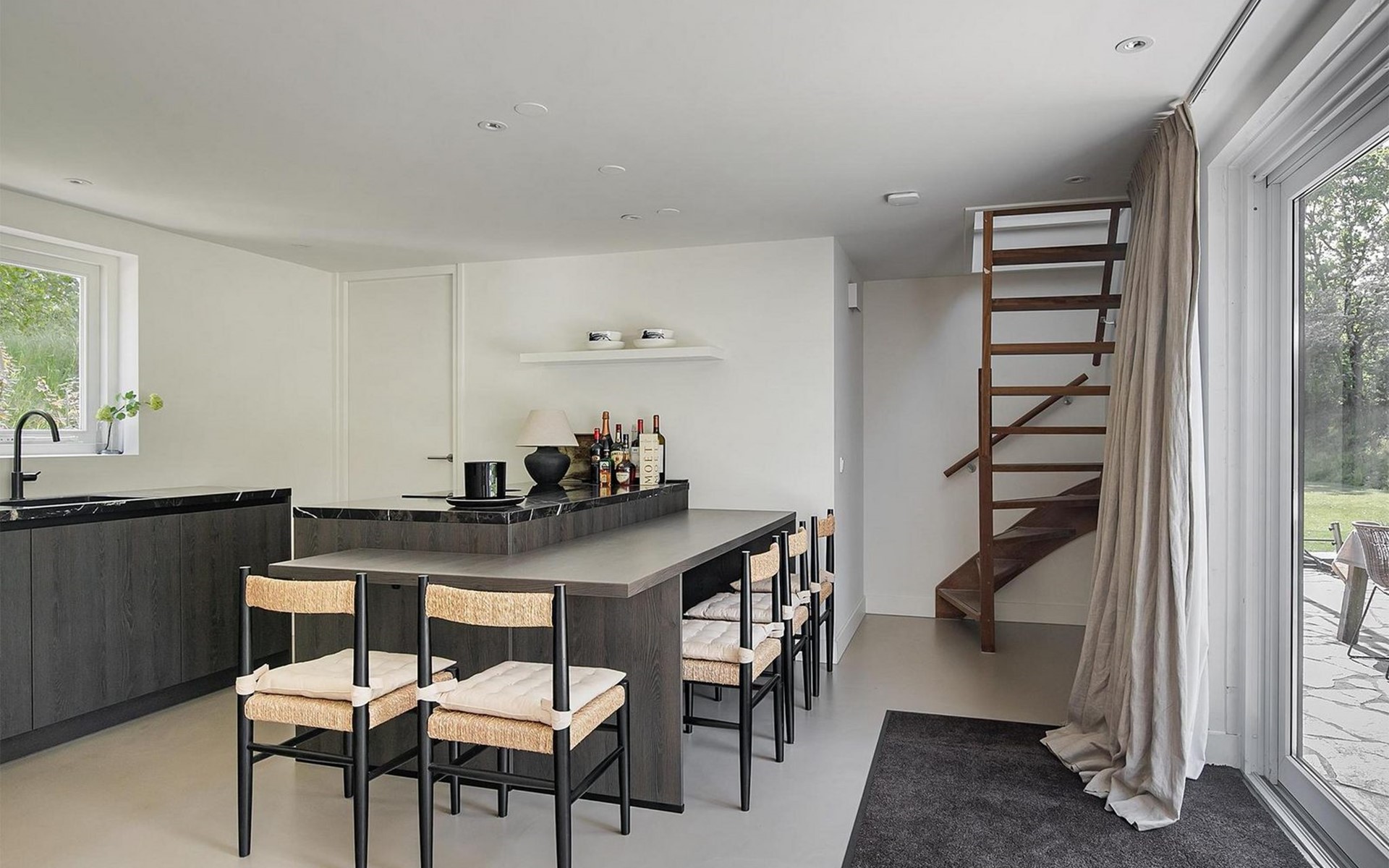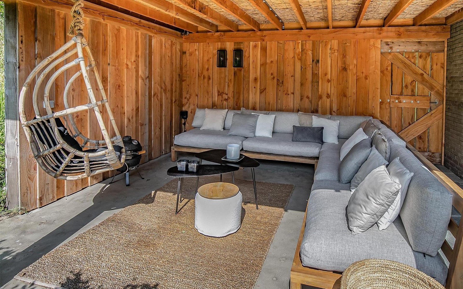 De woning beschikt over een prachtige overdekte veranda, compleet met een comfortabele loungeset waar je kunt genieten van de frisse buitenlucht of zwoele zomeravonden. De mooi aangelegde tuin is een ware oase, met een eettafel voor al-fresco diners, comfortabele ligstoelen om te ontspannen en een weelderig grasveld waar je kunt genieten van de zon.