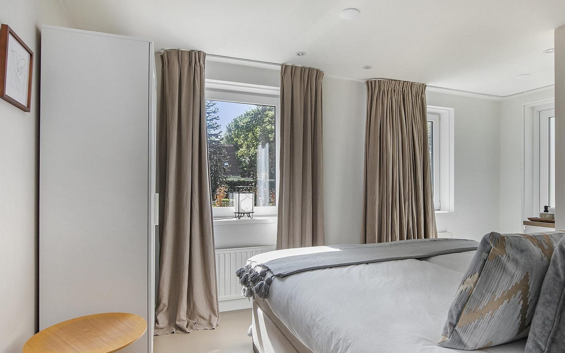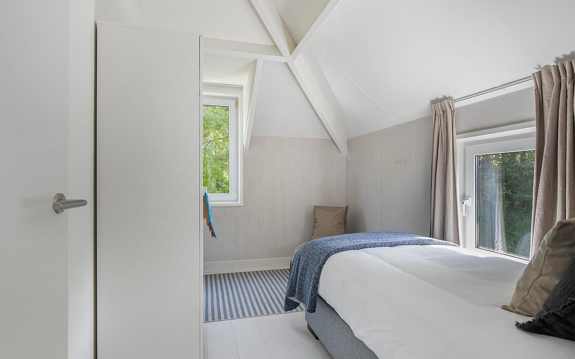 De woning beschikt over drie smaakvol ingerichte slaapkamers, elk met een comfortabele bedden, zodat je kunt genieten van een goede nachtrust. Als kers op de taart is er zelfs een ligbad aanwezig in de hoofdslaapkamer, voor ultiem luxe en ontspanning. Geniet van een rustgevend bad na een lange dag verkennen en laat al je zorgen wegsmelten. De  tweede slaapkamer heeft een eigen wastafel. In de slaapkamer boven staat een eenpersoonsbed.