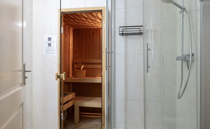 Voor het ultieme vakantiegevoel is er een badkamer met douche en privé sauna op de begane grond. Daarnaast is een separaat toilet en een buitenberging.