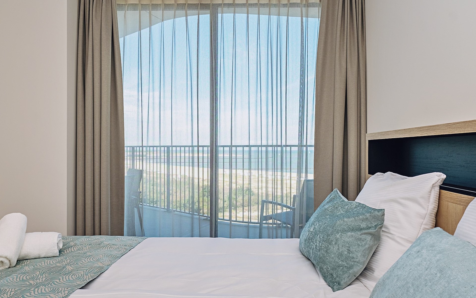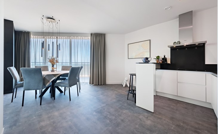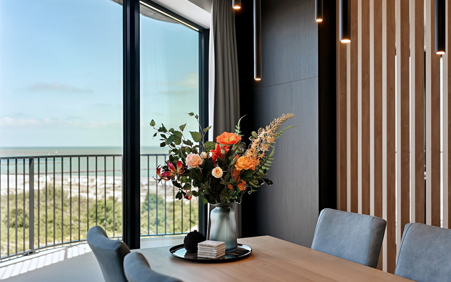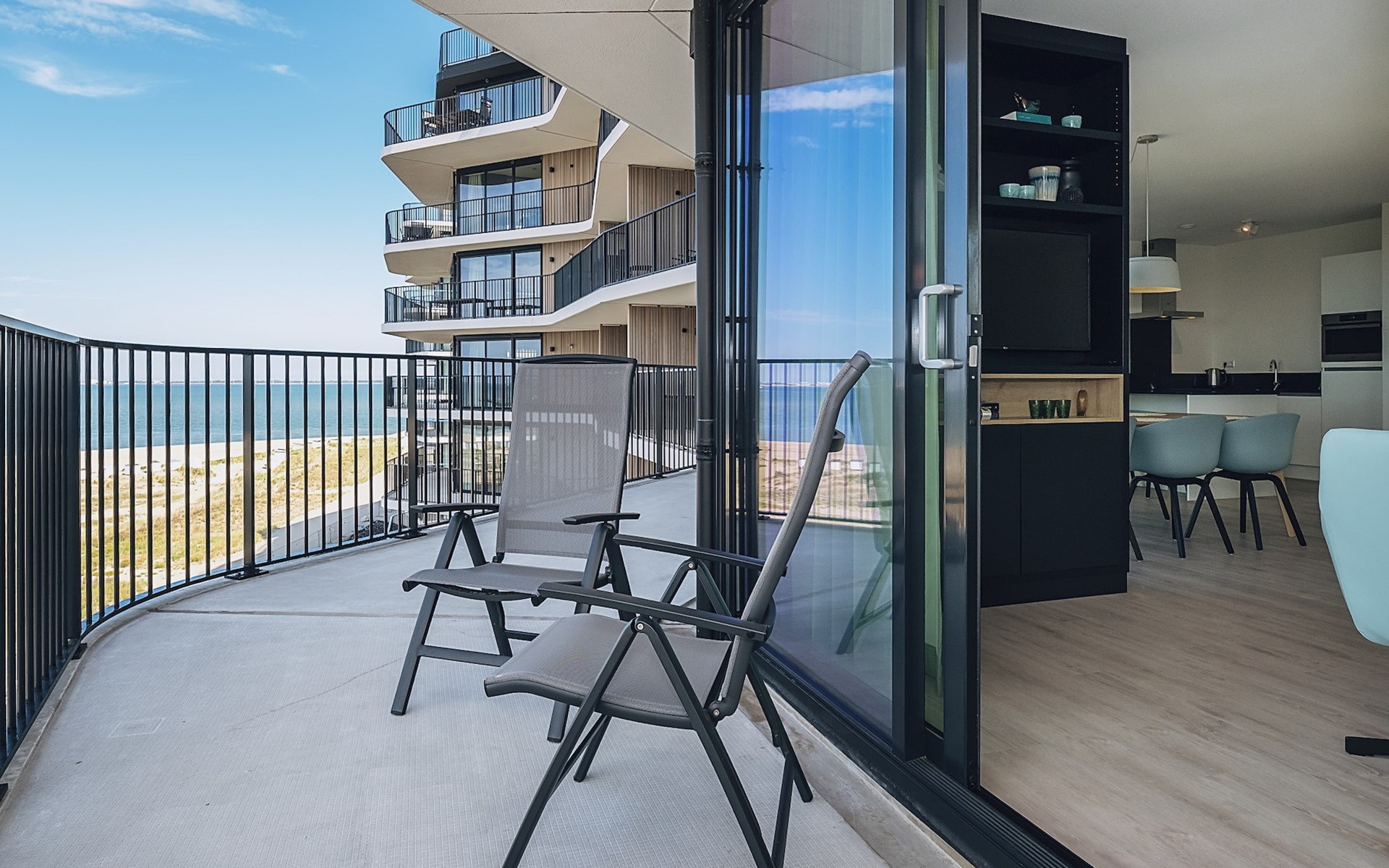 Het ruime balkon is voorzien van terrasmeubilair en loopt door tot aan de zijkant van het appartement. Vanuit de woonkamer en elke slaapkamer kun je het balkon betreden. Na het wakker worden stap je dus zo je balkon op om de gezonde zeelucht in te ademen en het indrukkende uitzicht over zee te bewonderen. Ultiem genieten!
